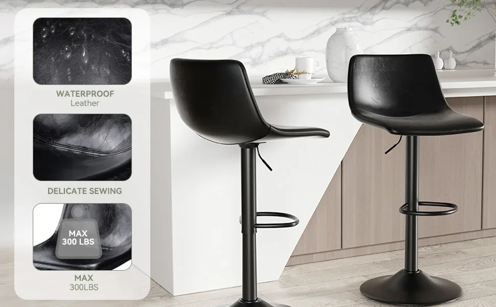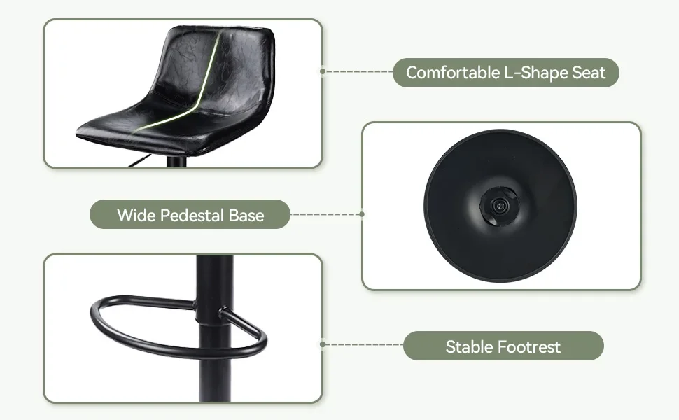 • 【Upgraded Comfort】Upholstered in premium PU leather and filled with high-density sponge, the cushion of the bar chair is exceptionally elastic, providing a comfortable seating experience. Combined with a widened seat and backrest, it ensures maximum comfort for your enjoyment.