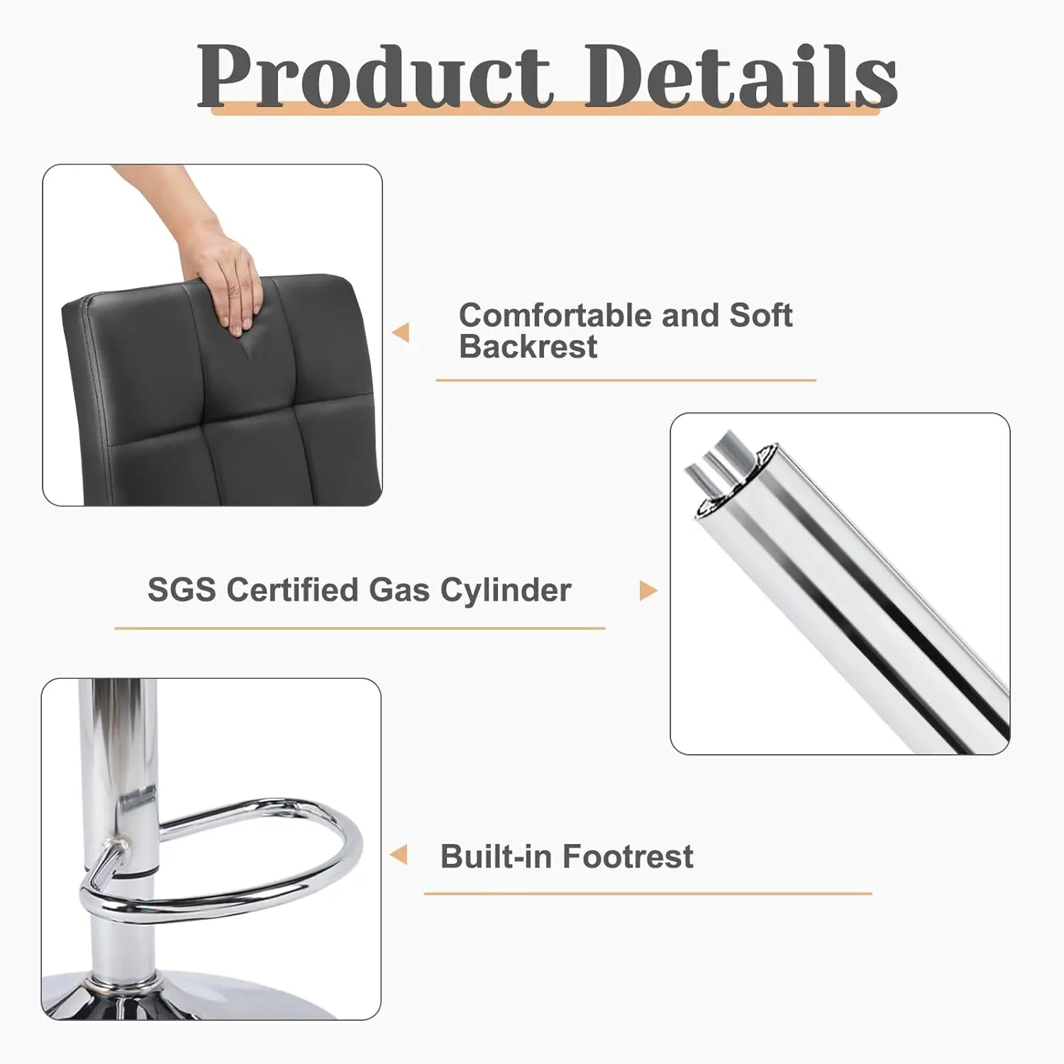 - 【Multifunctional Adjustments】The bar stools have a height adjustable function that can adjust to your most comfortable height according to the bar height. The bar stool also comes with a footrest and has a 360°swivel role, allowing you to relax your body and communicate more easily during casual conversation.