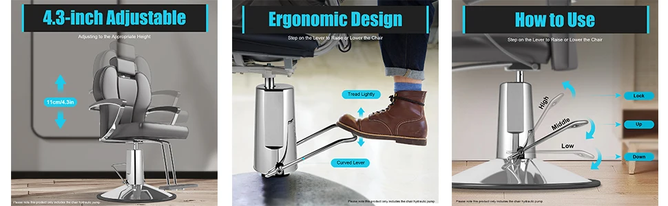 This chair hydraulic pump has a 4.3-inch itinerary that can adapt well to guests of different heights and can be adjusted with just a light tap. It is an indispensable companion in a hair salon, helping you transform a fixed-height chair into a more adaptable lift chair.
