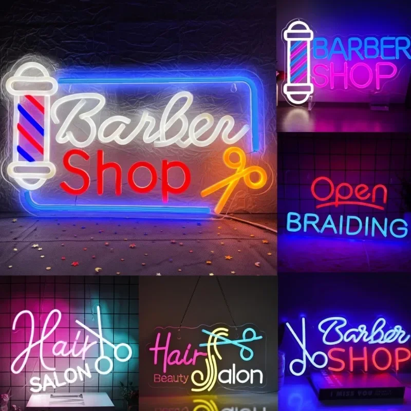 Barber Shop Neon Sign LED USB Powered Adjustable Brightness Open Light for Hair Salon Decor, Men’s Grooming Studio Advertising
