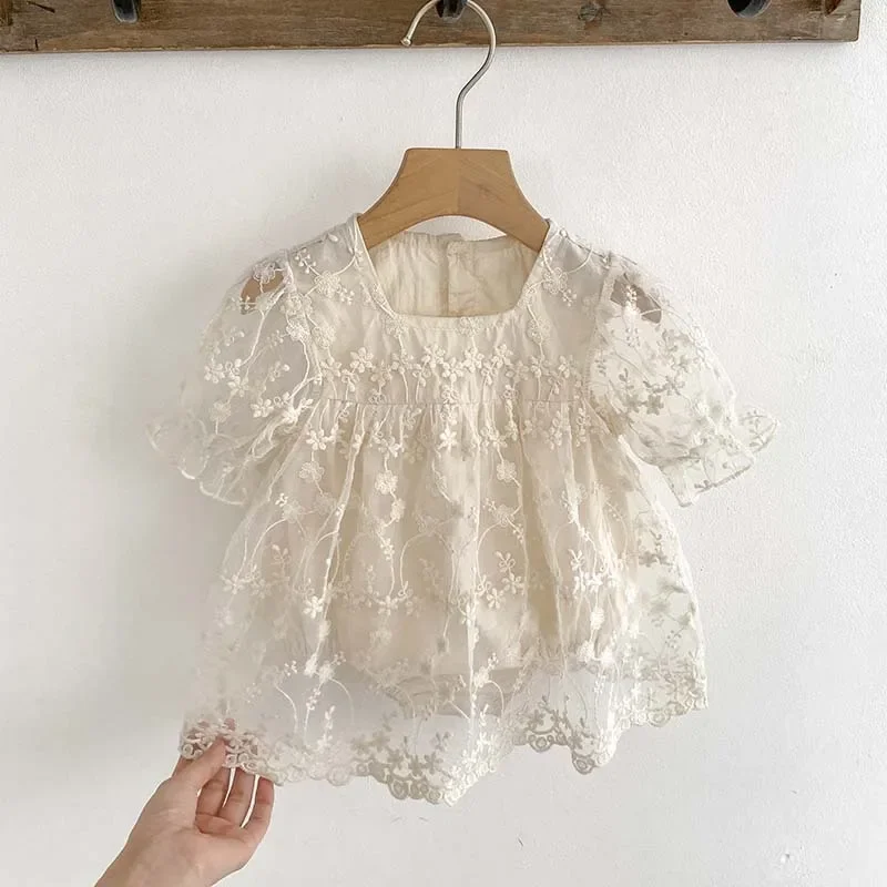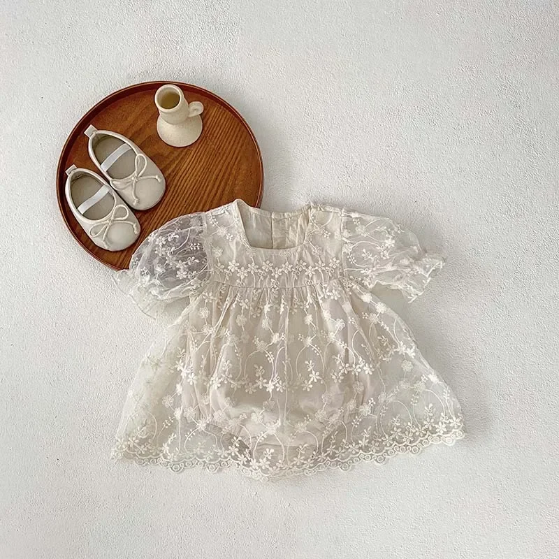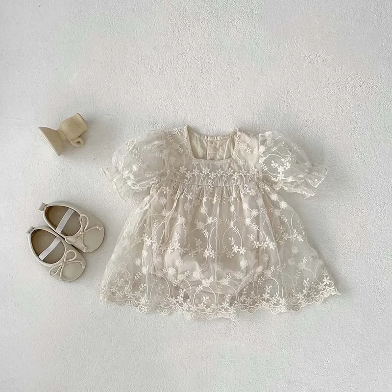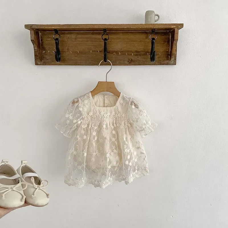 BARDIBESS 2024 Summer Baby Girls Dresses Toddler Lace Dress for Girls Infant Mesh One Piece