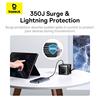 Surge protection absorbs sudden spike in current to protect your devices during thunderstorm.