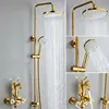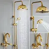 Bathroom Shower Faucet Set Gold Swan Bathroom Rainfall Shower Mixer Tap Polished Gold Brass Bath and Shower Faucet Set