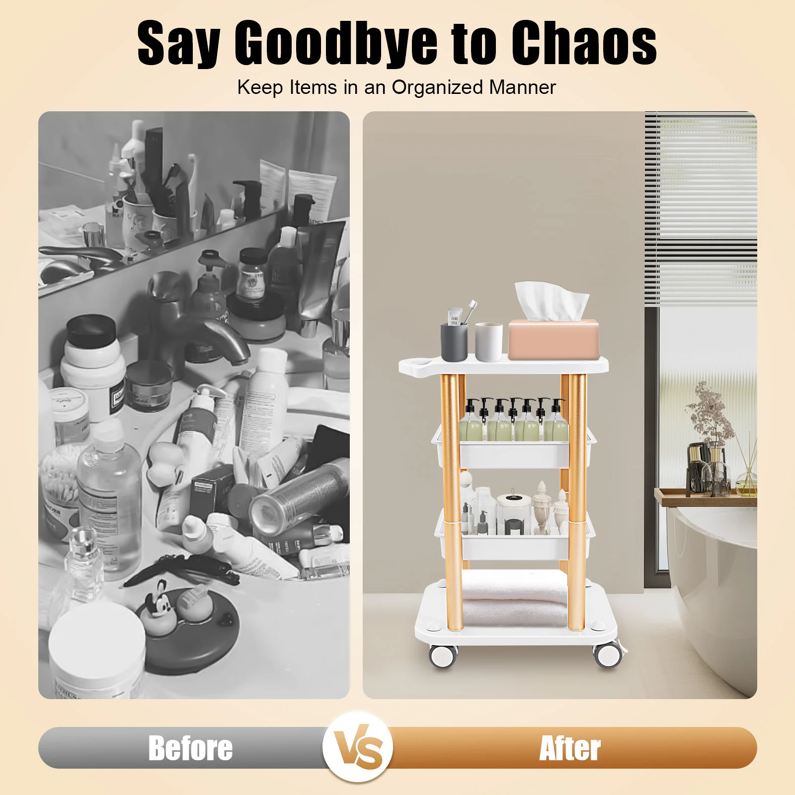 4. Double-layer multi-functional rack, can be placed cosmetics, essential oils, skin care products, etc.