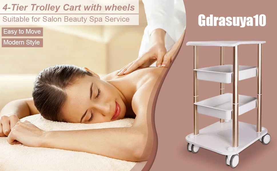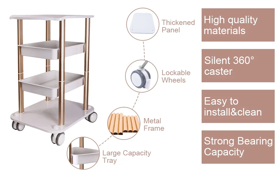 Trolley Stand 4 Layer Small Mobile Rolling Cart 4 Shelf Aluminum Trolley Multi-functional Rack For Beauty Instruments 150kg