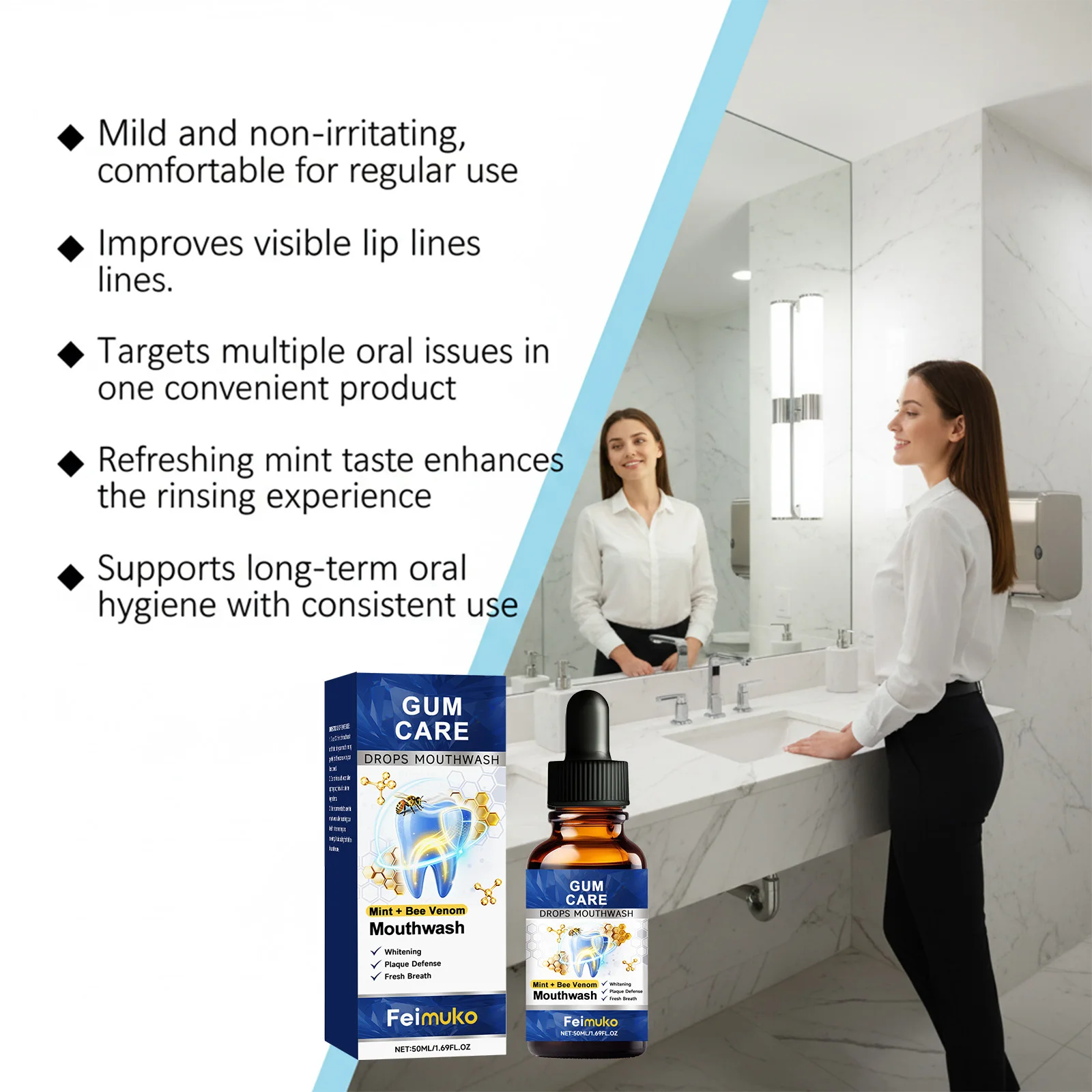 9. One bottle with multiple effects, targeted to solve various oral problems, continuous use, and assistance in long-term oral hygiene maintenance