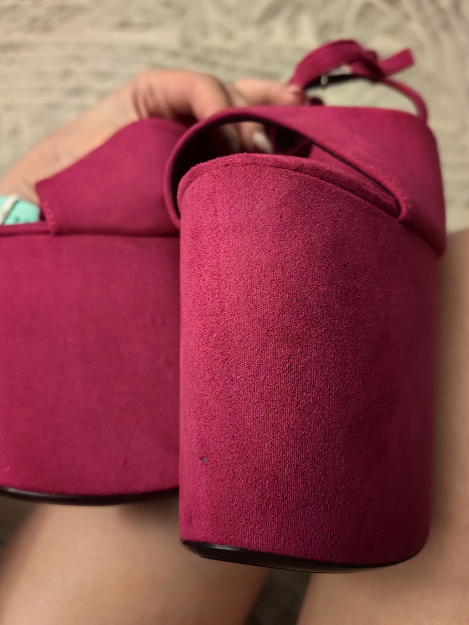 Shoes are great, this is not the first time I order. The first were black. Still in good condition. Wanted something bright. Unfortunately, they came with a slight defect-a hole in the material on the platform.
