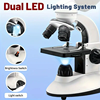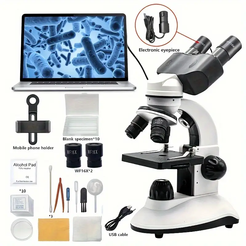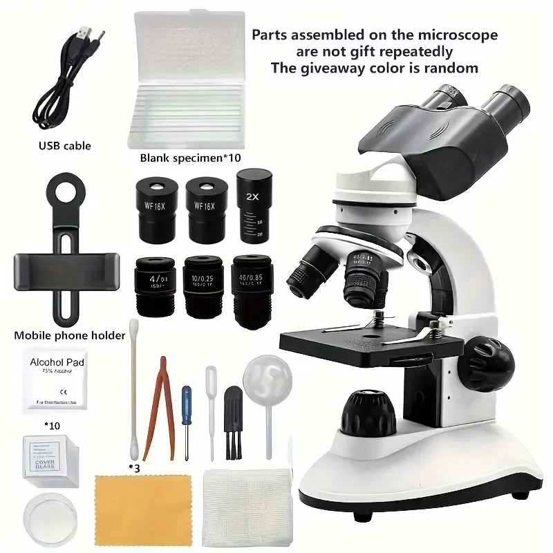 1.Laboratory Composite Microscope: Equipped with 4X, 10X, and 40X lenses, it offers a wide range of magnification options, with three objectives providing up to 2000x magnification, ensuring the most detailed observation and analysis of your samples. Precision polished optical components and high-quality glass lenses provide clear and vivid images, making it a reliable choice for educational and professional use. This microscope is an excellent choice for both children and adults, making it a versatile tool for home, school, and laboratory environments.
