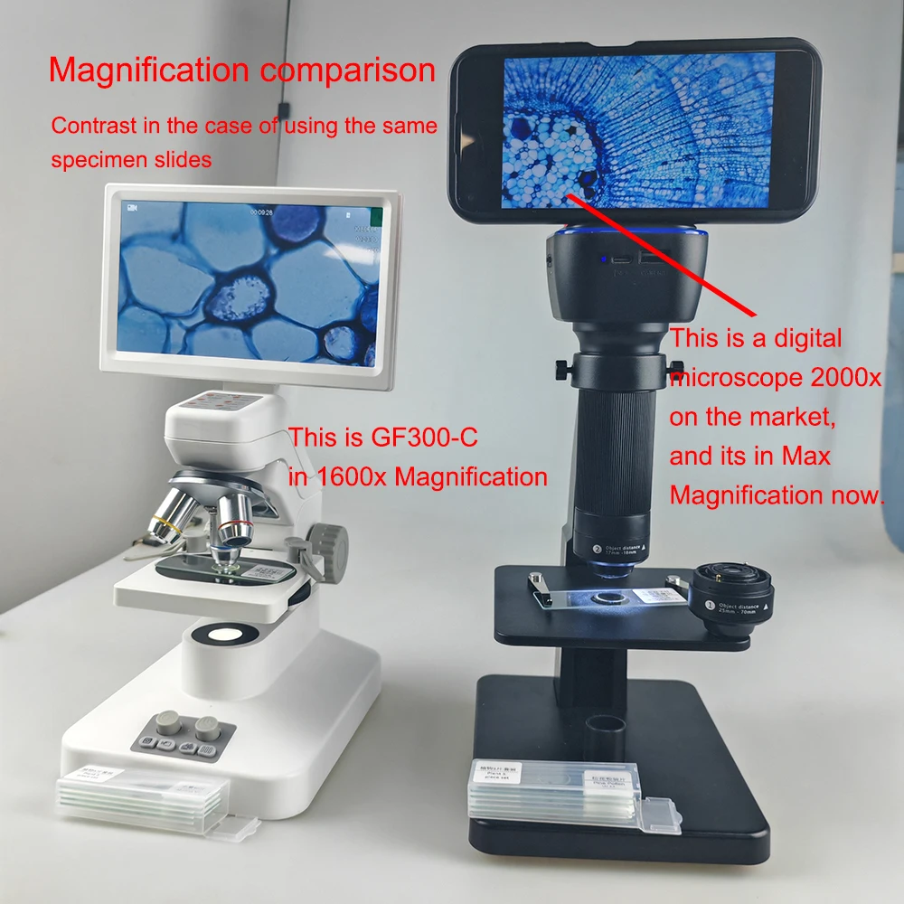 Biological Digital Microscope with 7 inch IPS screen, 1600x Utral HD Optical Objective Lenses, Phone Computer TV Compatible with