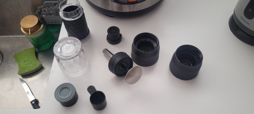 I am very pleased. I had no problem making coffee-she left the first time. I made out of ground coffee. She came out strong, flavorful with foam. So strong that I had to add a bit of water (Mega plus for me). She lost the temperature a bit, but it doesn't bother me at all. You can heat the Express by pouring hot water into it. Coffee gets very fast. I bought the Express for work and trips. I think we'll like each other very much😊 As for the material of execution, it is very solid. Plastic strong and seems durable. This middle part to the touch satin. Super! I recommend. Worth the price.
