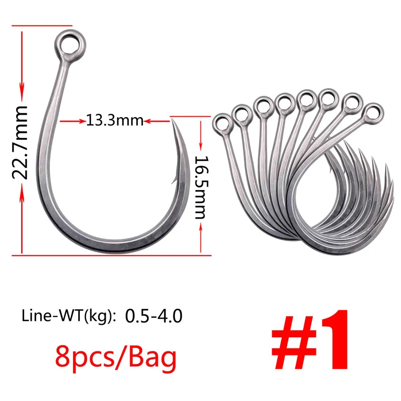 2..The sea hook ring of this hook is flat and in a straight line with the hook tip, which can be matched with jig bait.