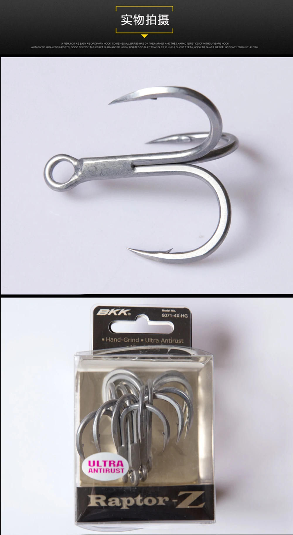 BKK Raptor-Z 6071-4X-HG Treble Fishing Hooks #5/0-#4 Sea Fishing Accessorie Anti-Rust Coating Triple Anchor Hooks For Carp Pesca