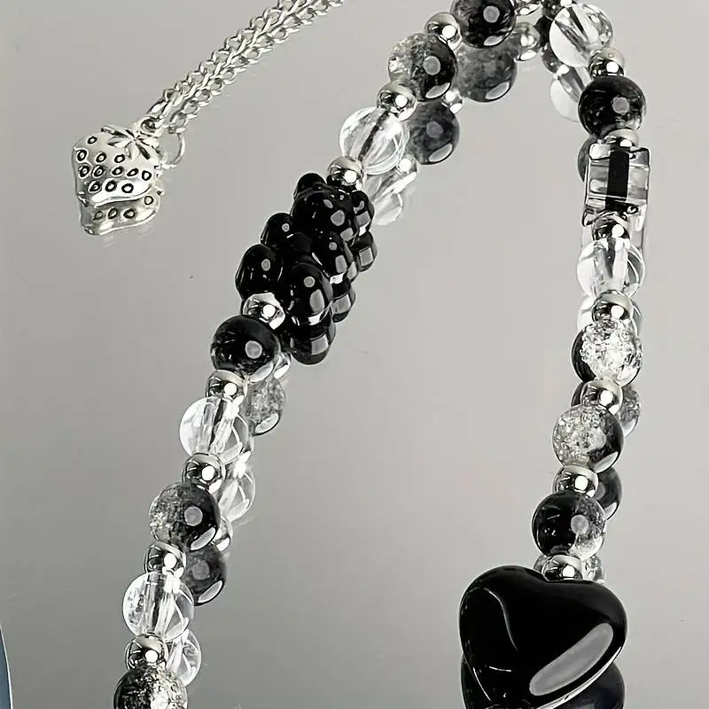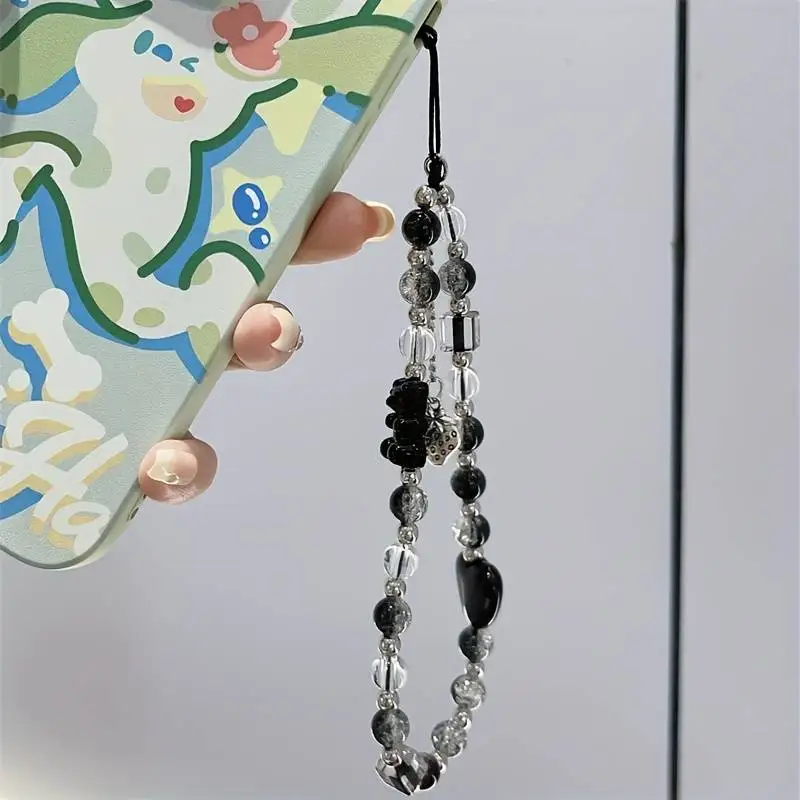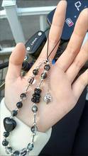 Black Strawberry Bear Love Phone Chain Charm Wrist Strap Keycord Cellphone Lanyard Girl Keychain Mobile Phone Case Hanging Chain