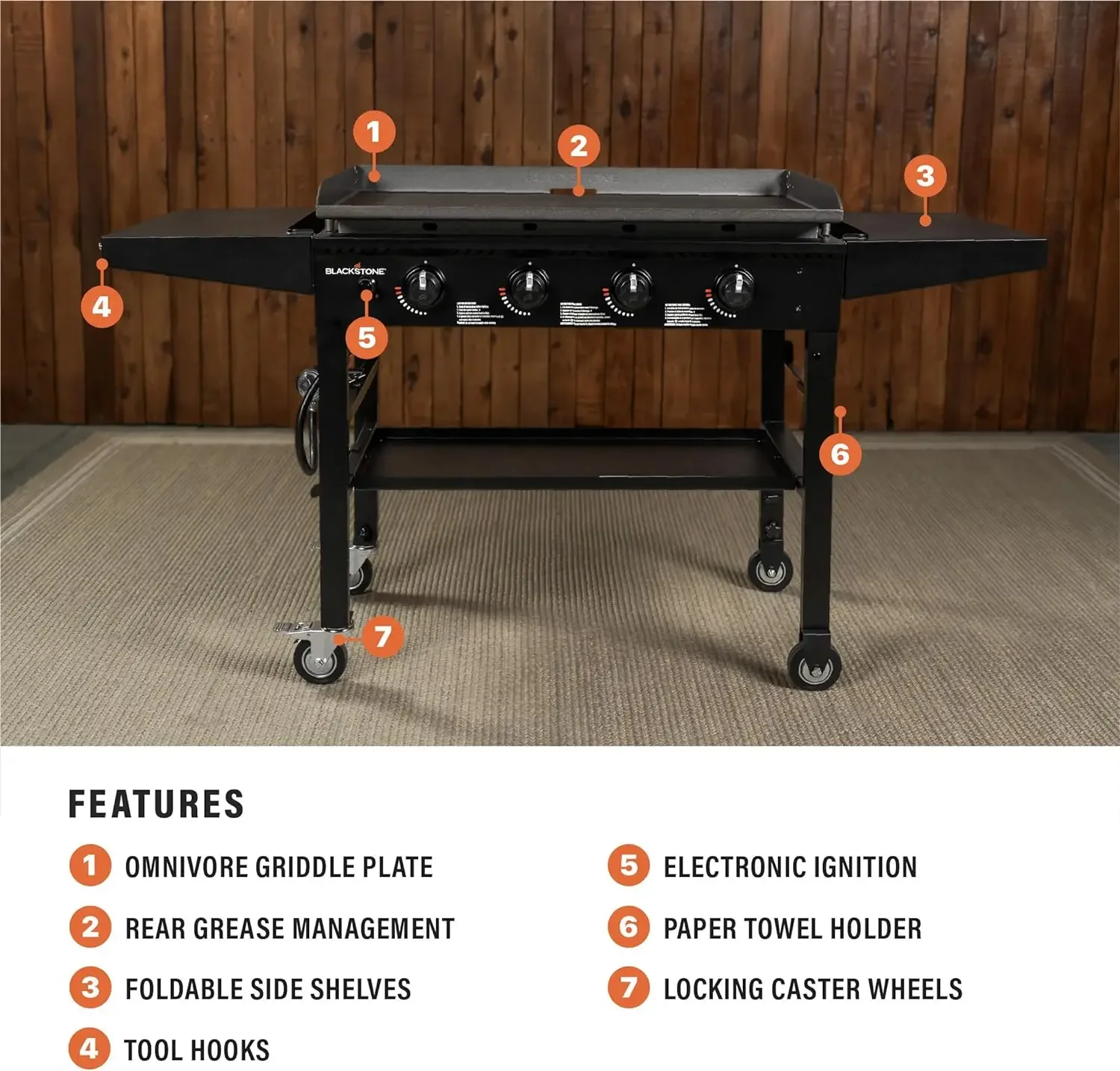 - Built to Endure: Rely on durability with a powder-coated black steel frame, stainless steel burners, and robust cold-rolled steel cooktop. Simplify post-meal cleanup, ensuring longevity for your Blackstone grill experience.