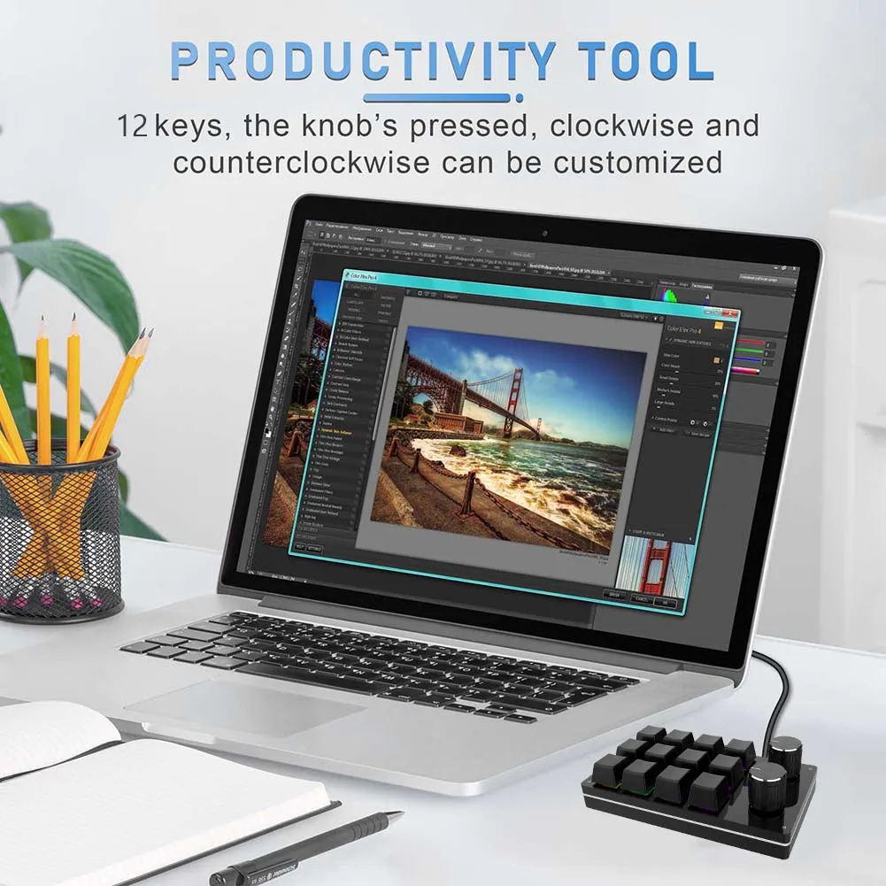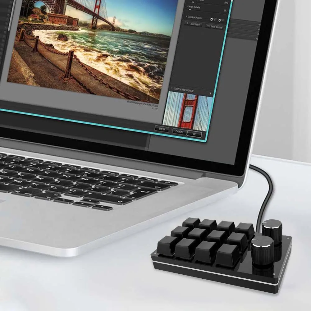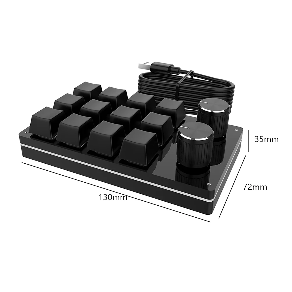Macro Custom Gaming Keyboard Knob 12 Key + 2 Knob Programmable Hotswap One-handed Mechanical Keypad for PS Drawing