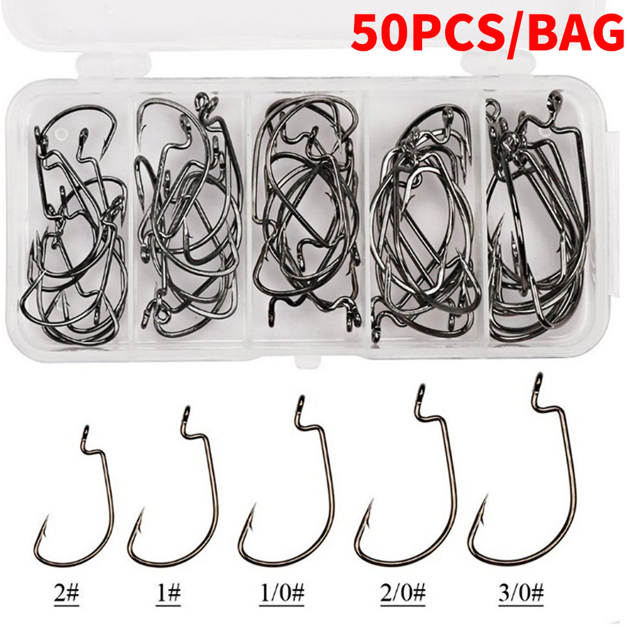 50pcs Sea Fishing Hook Set Offset Hooks Owner Barbed Carp Snap  Treble Hooks Fishing Tackles Accessories Wide Gap Texas Fishhook