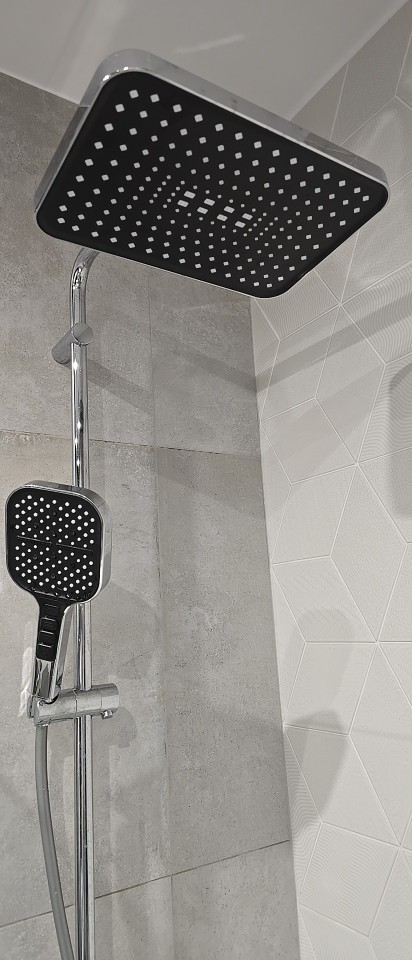 An even stream. Plastic but does the job. There was no water flying through a few holes, but it was enough to bury with a needle and it is already ok;)
