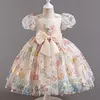 Bow Flower Girl Dresses for Weddings Lace Short Sleeve Girls Party Dresses Summer Children Bridesmaid Dress 1-7 Years