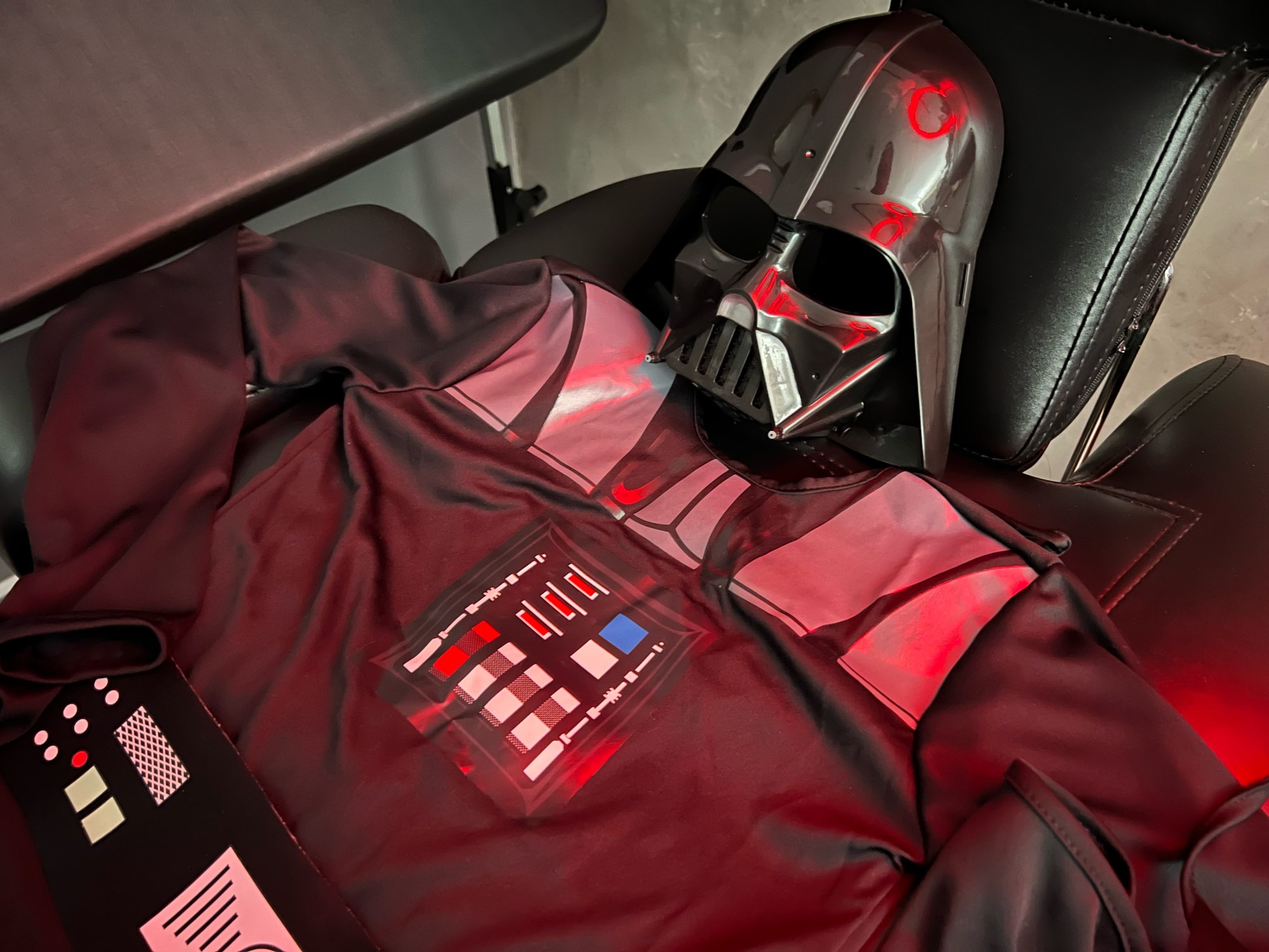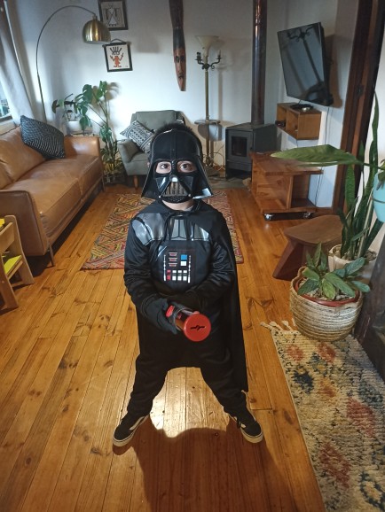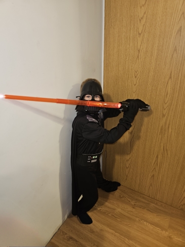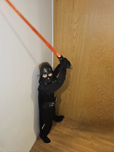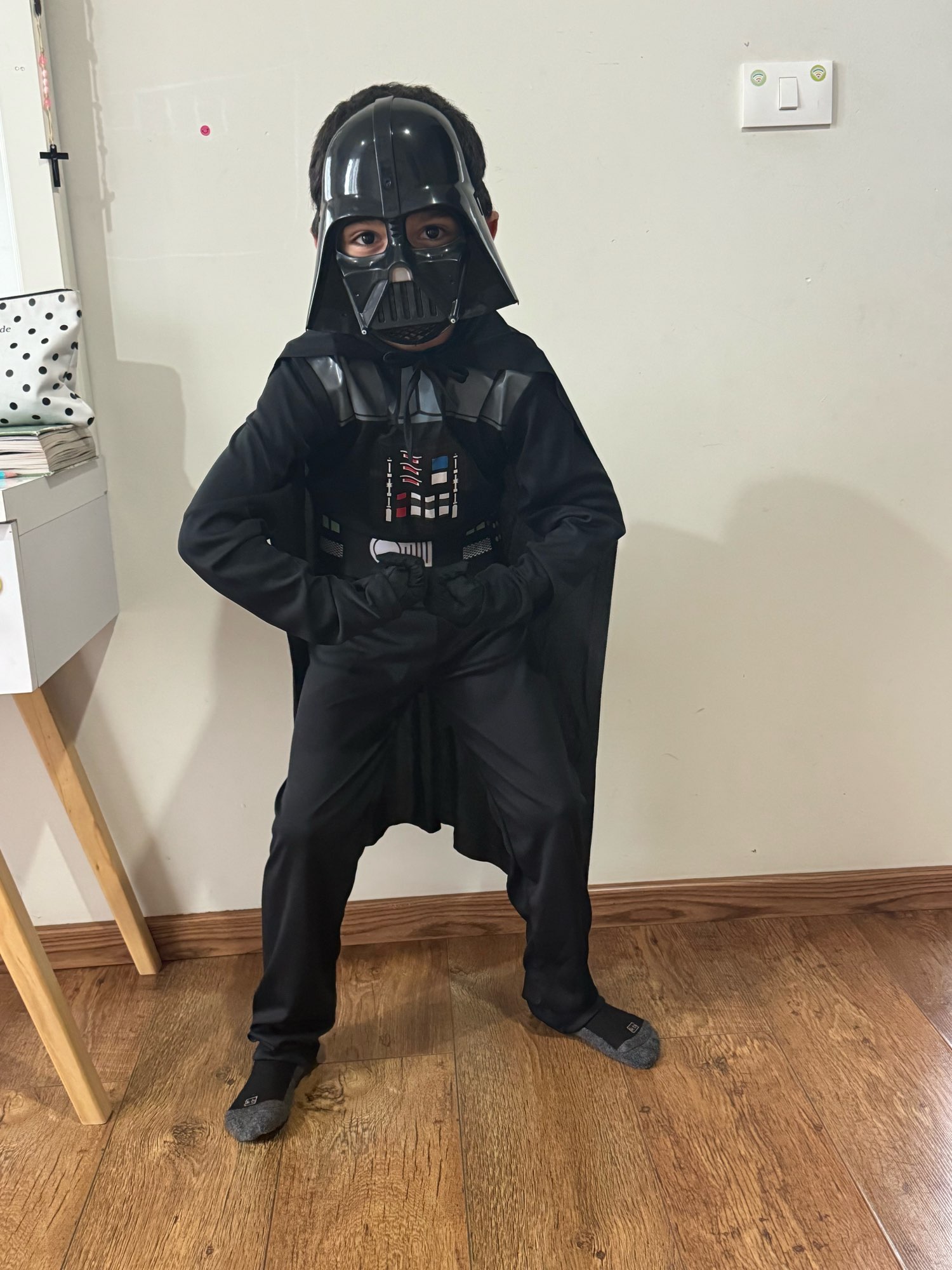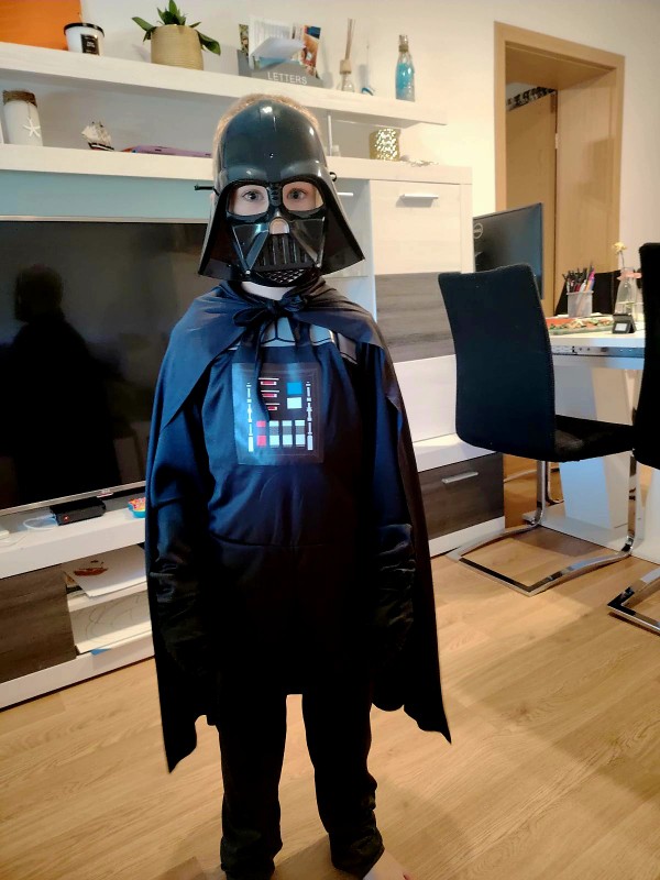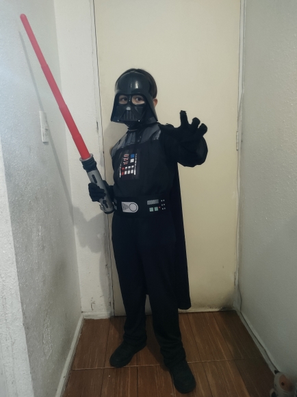 This very father the suit, it is thin but the prints look good, the Cape is a little longer than the knee, if I recommend it for a simple darth vader costume.
