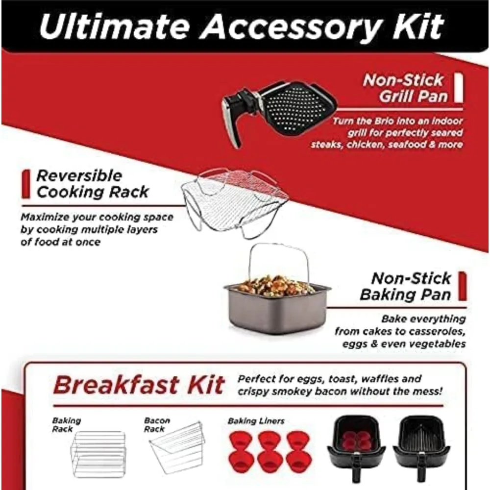 - CONSISTENT COOKING TEMPERATURE – Other air fryers can deviate from their targeted temperature by as much as 40°F. The Brio makes sure that the temperature you set is the temperature you get by checking the temperature inside the unit 120 times per second. With Brio, your food comes out perfectly crispy every time.