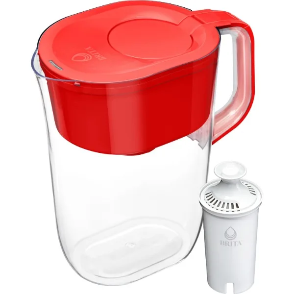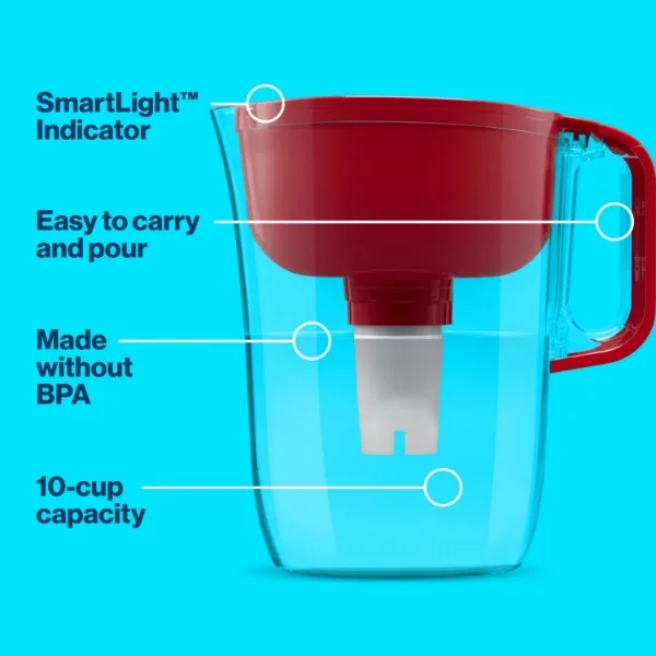 Brita Large 10 Cup Red Huron Water Filter Pitcher with 1 Standard Filter, Made Without BPA