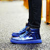 British Style Blue Shiny Mens Shoes Casual Hip Hop Luxury Designer Shoes Men Fashion High Top Sneakers Men Casual Glitter Shoes