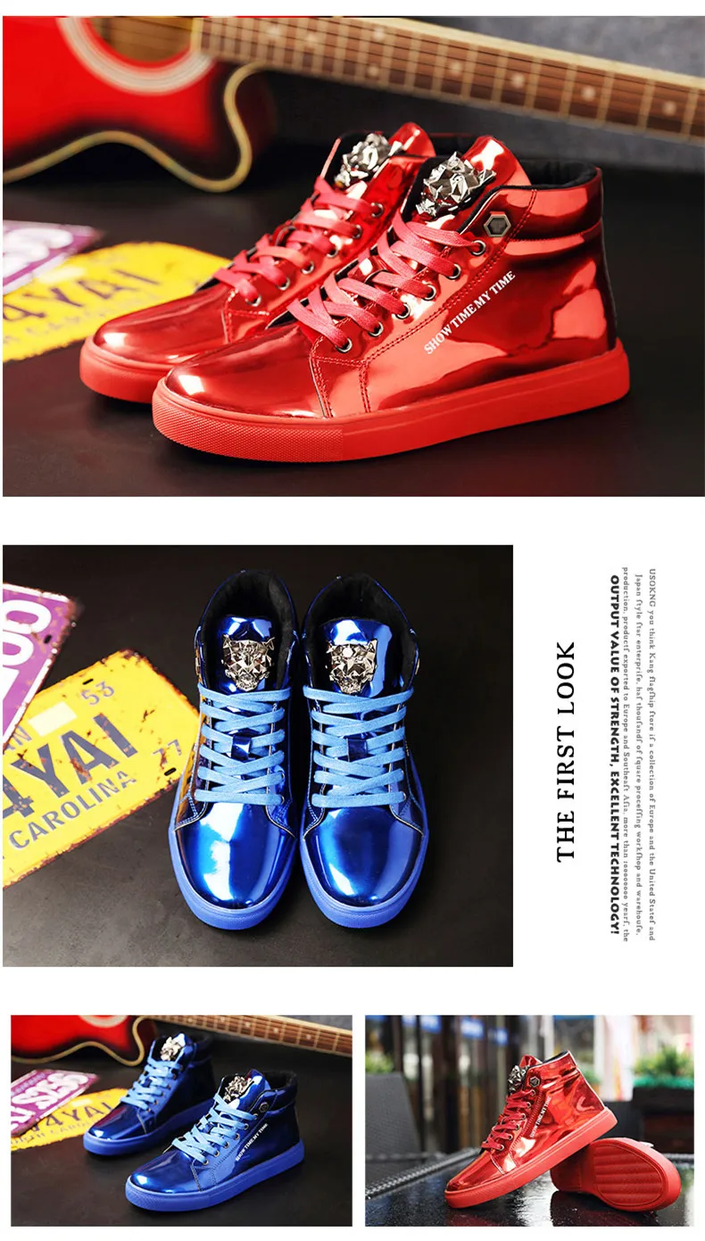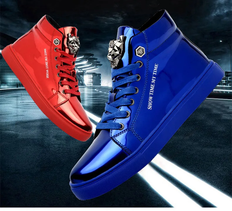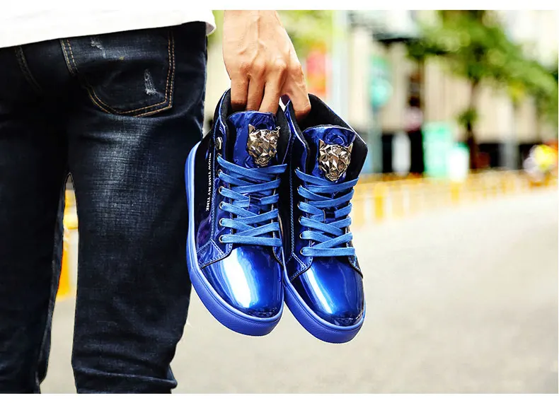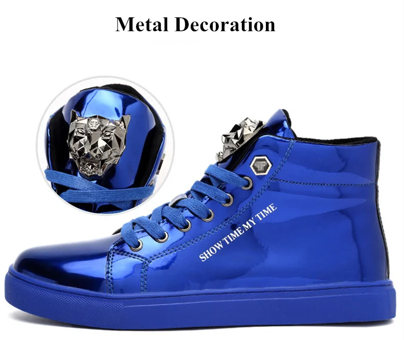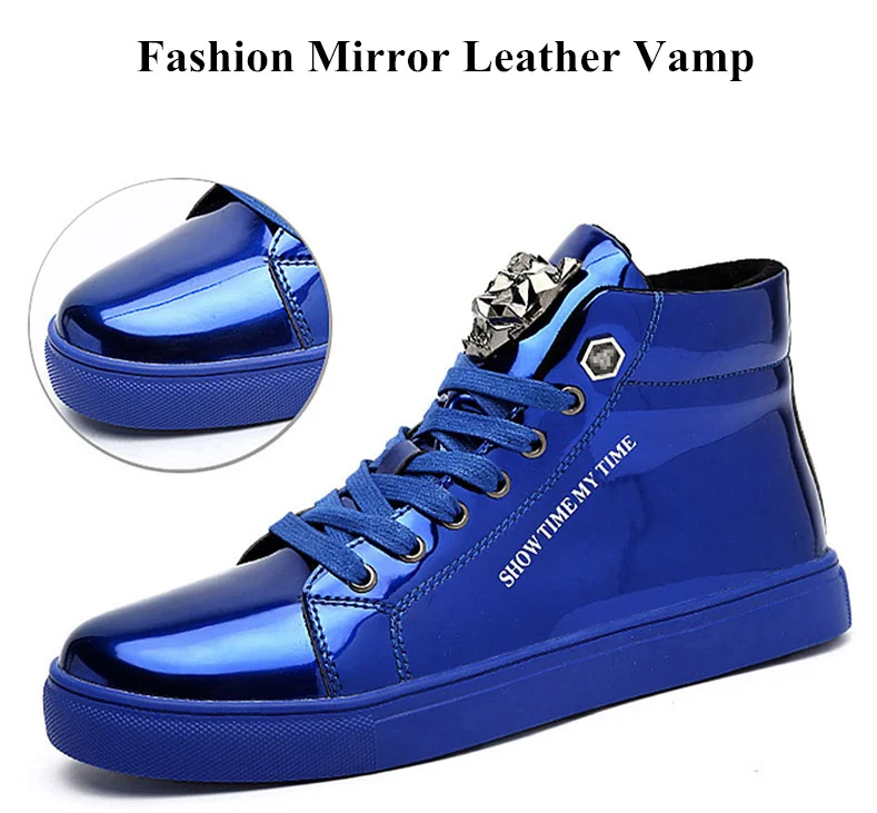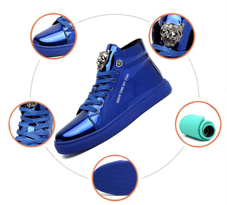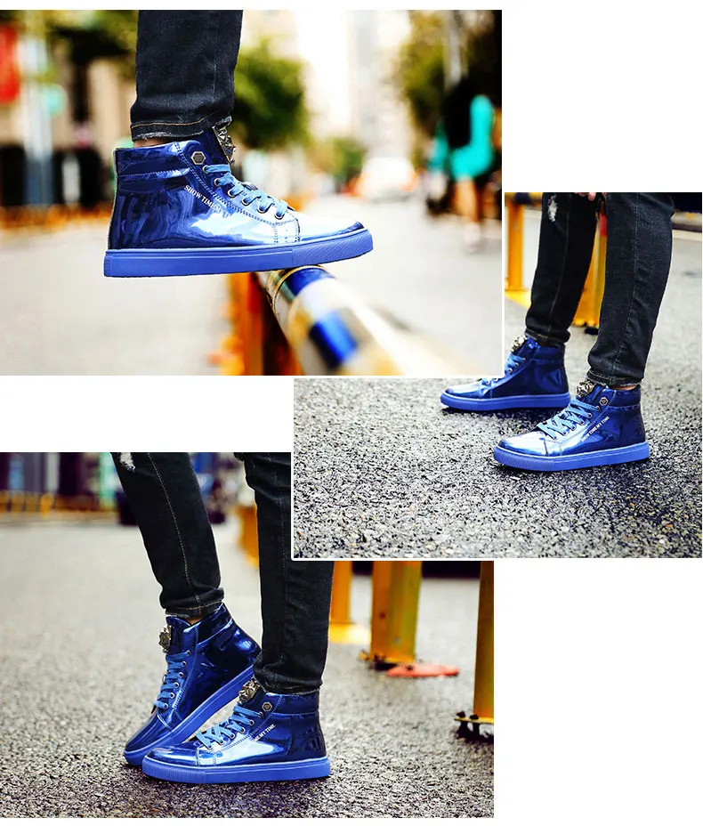 British Style Blue Shiny Mens Shoes Casual Hip Hop Luxury Designer Shoes Men Fashion High Top Sneakers Men Casual Glitter Shoes