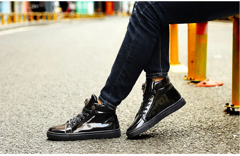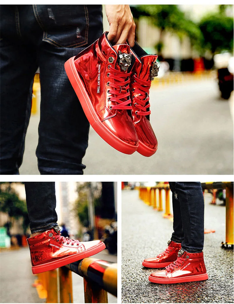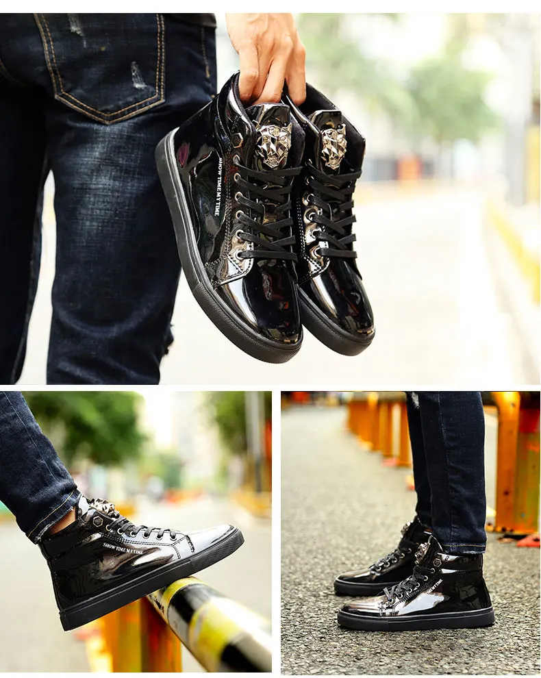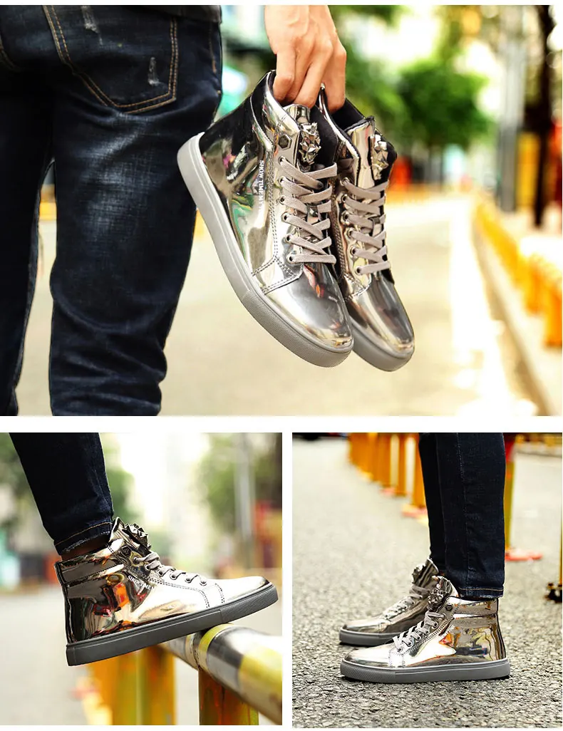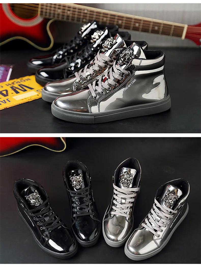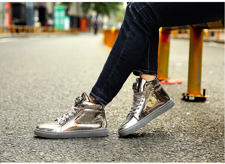 British Style Blue Shiny Mens Shoes Casual Hip Hop Luxury Designer Shoes Men Fashion High Top Sneakers Men Casual Glitter Shoes