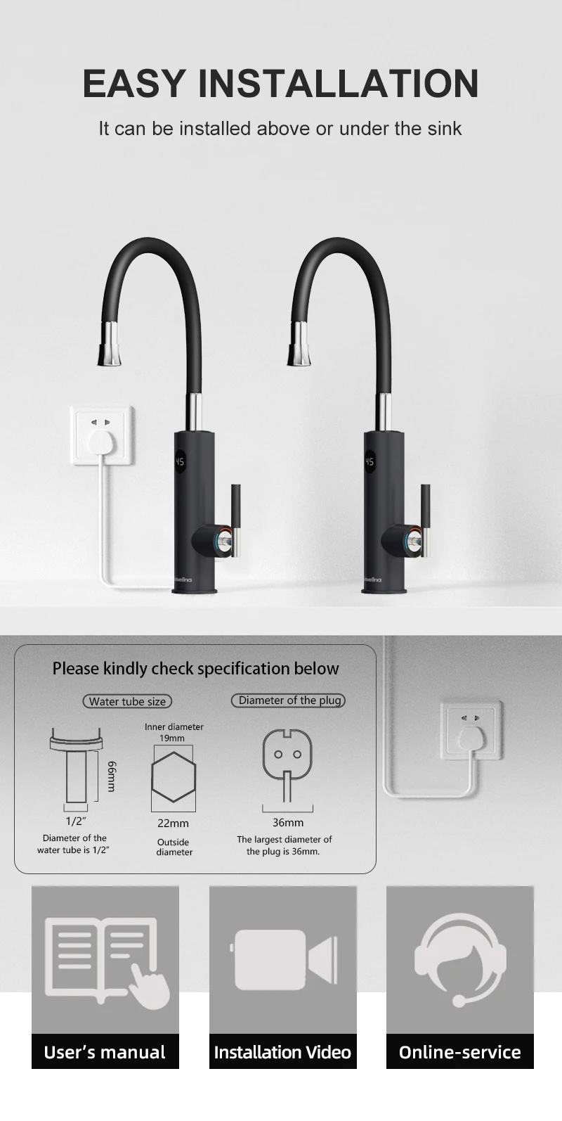 Instantaneous Water Heater, Instant, Space-Saving, economical&eco-friendly