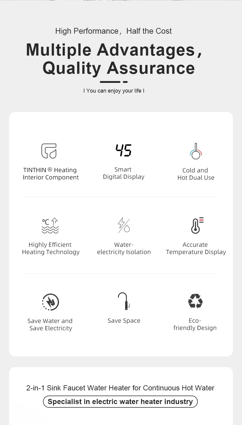 – No need to store water for preheating and no need to keep warm. To avoid heating too much water and a waste.