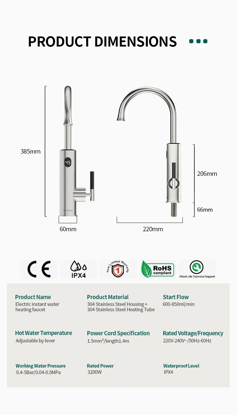 Instantaneous Water Heater, Instant, Space-Saving, economical&eco-friendly
