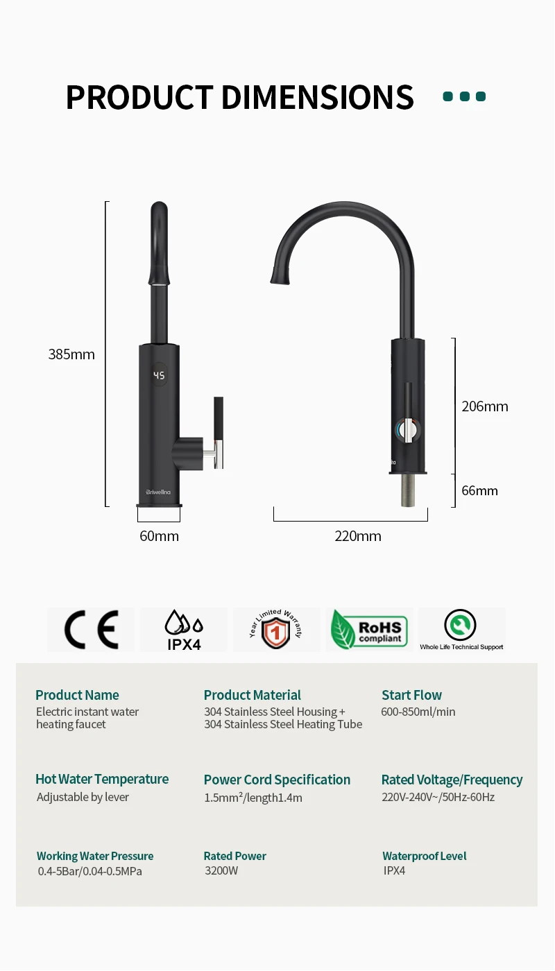 Instantaneous Water Heater, Instant, Space-Saving, economical&eco-friendly