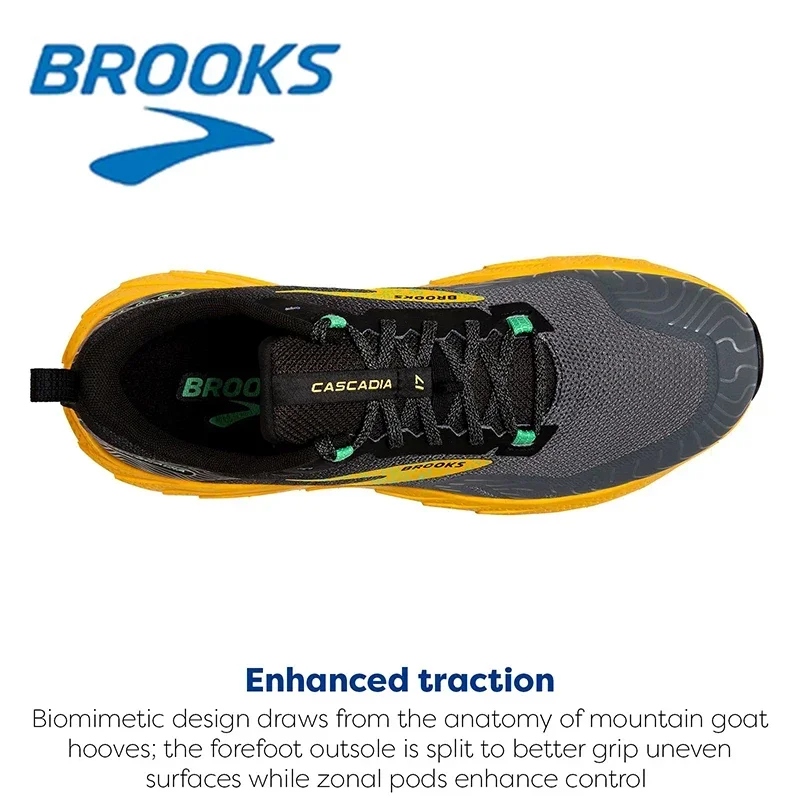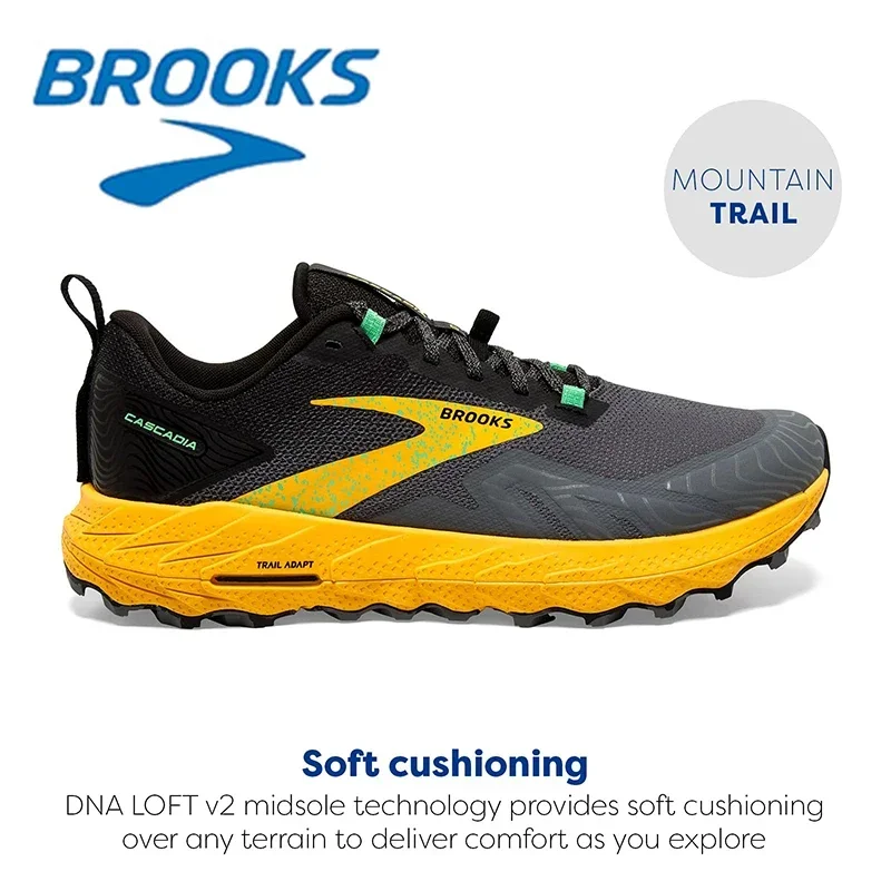 BROOKS Cascadia 17 Black and Yellow Men’s Mountain Running Shoes Ultra Lightweight Rebound Training Shoes Men Sneakers