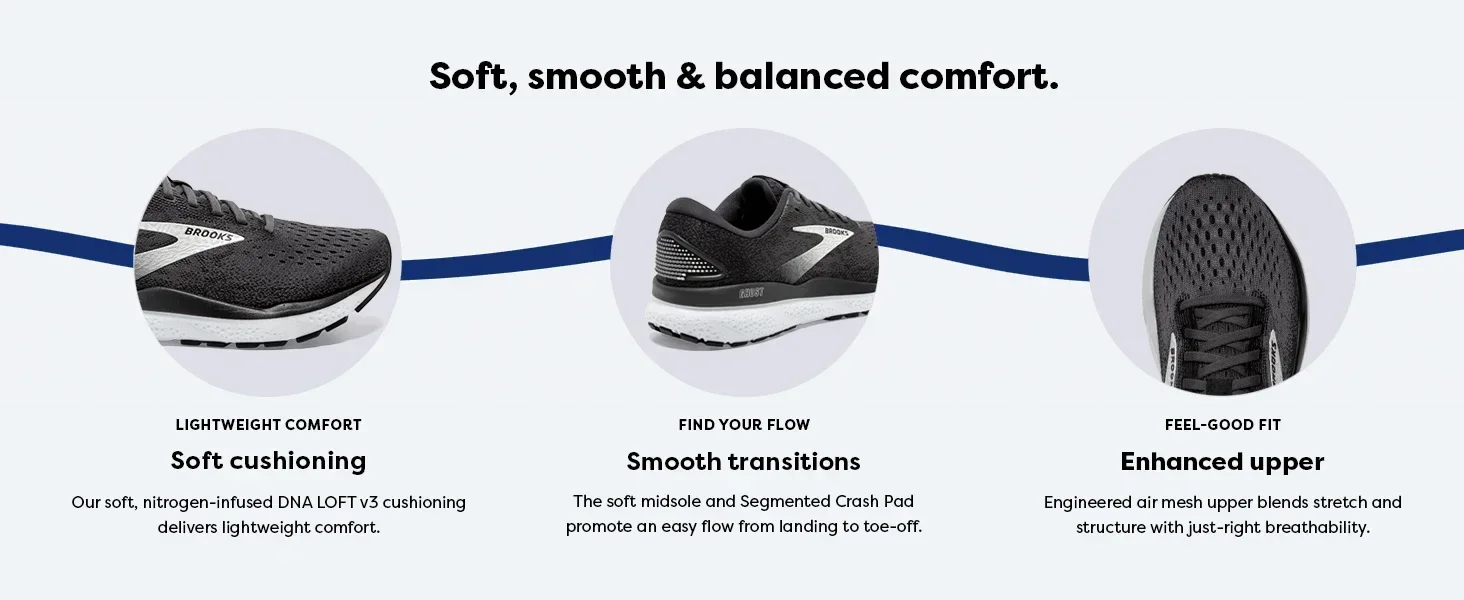 Brooks Men’s Ghost 16 Casual Sneakers Neutral Running Shoes Breathable Wear Resistant Low-top Non-slip Sports Training Shoes