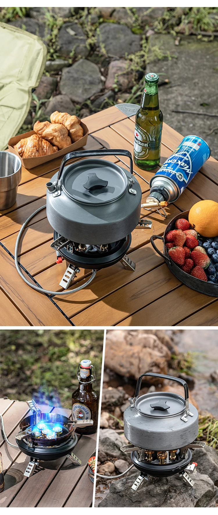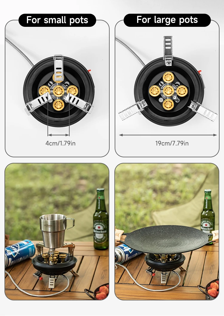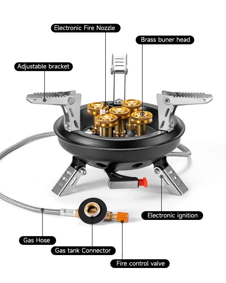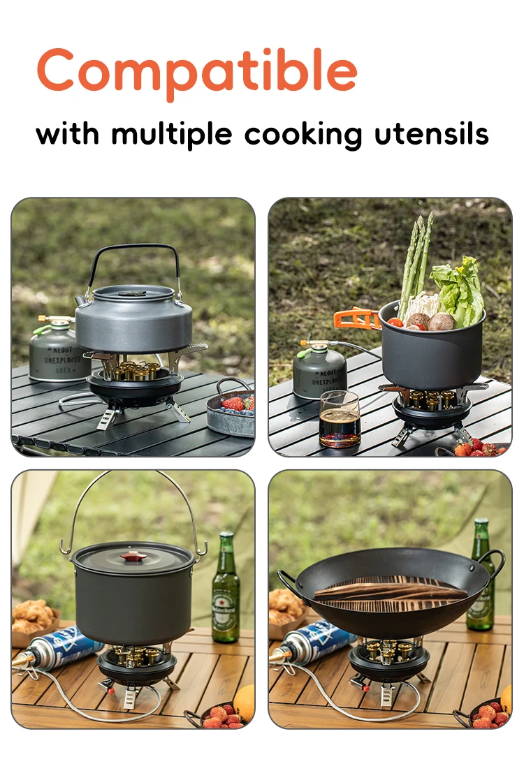 1. Camping stove is made of Copper and steel, light weight, strong and durable, high temperature resistance, rust prevention, radiation protection. It is durable and can be used repeatedly in the outdoors, such as camping, hiking, fishing with friends, etc.