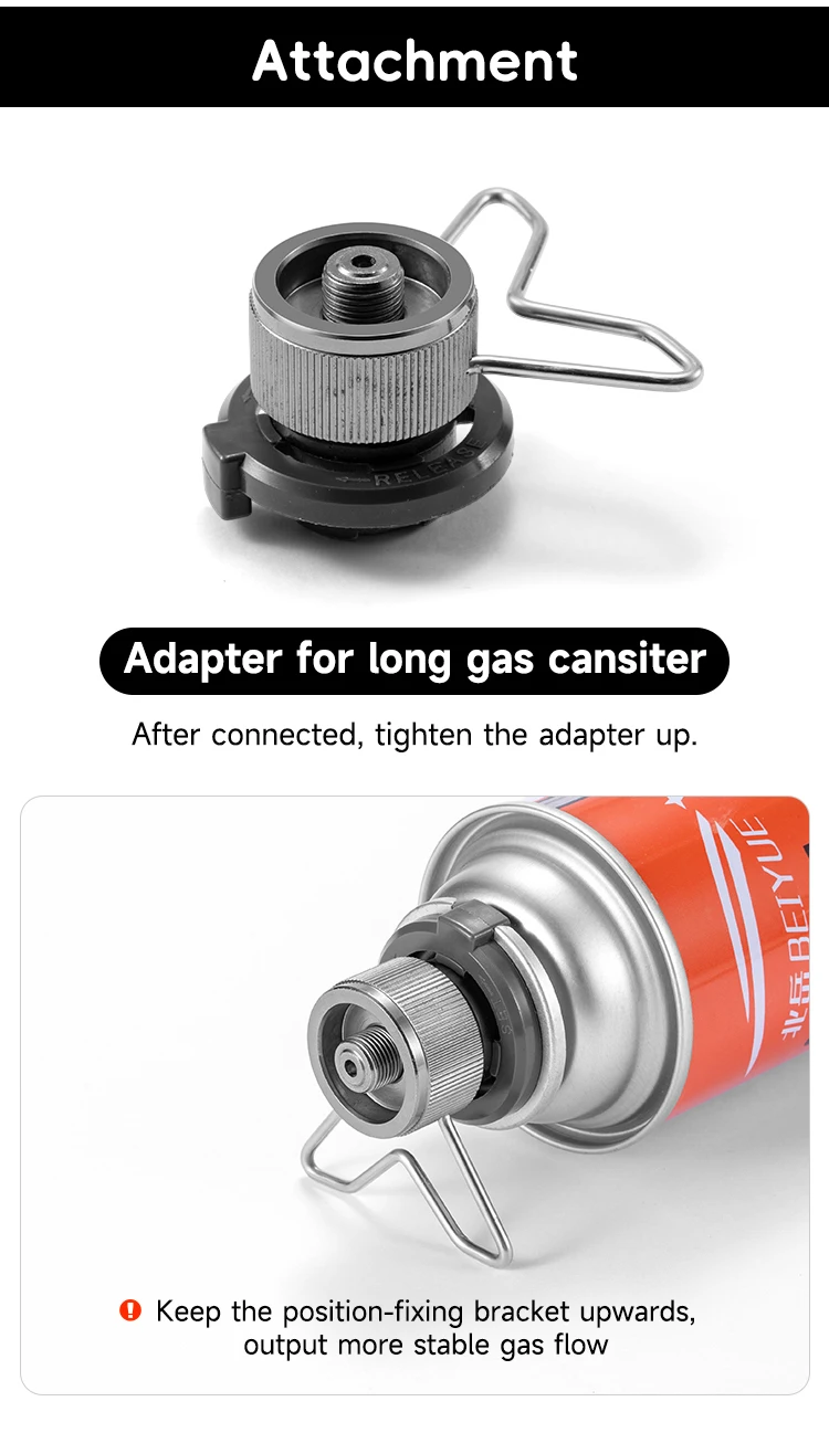 2.FOLDABLE AND COMPACT. After extended, the stove fire board size 18.5 * 12cm, suitable for 25cm diameter pot and pan, accommodate 1~3 persons. Compatible with any 7/16 thread single butane/butane-propane mixed fuel canisters (available in most countries).