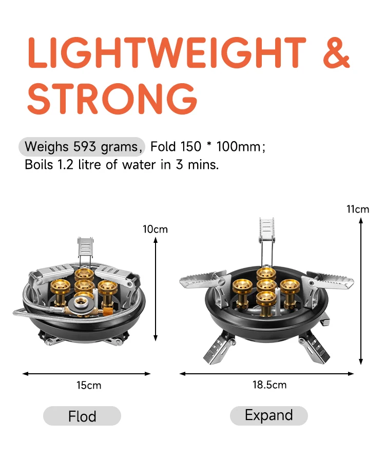 4.SUPER LIGHTWEIGHT. protective case included.Stove weighs 600 grams (130 grams with case), measures 7.3×4.8×3.2. inches open, collapses to 5.9x4x3.2 inches.