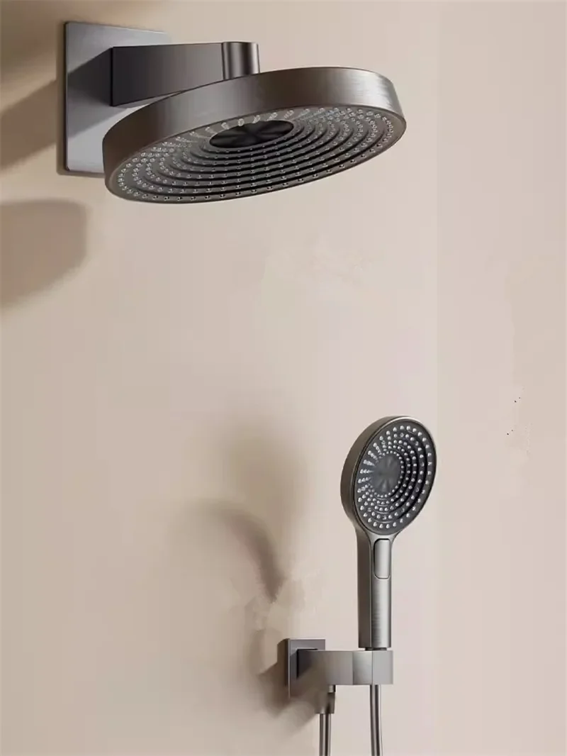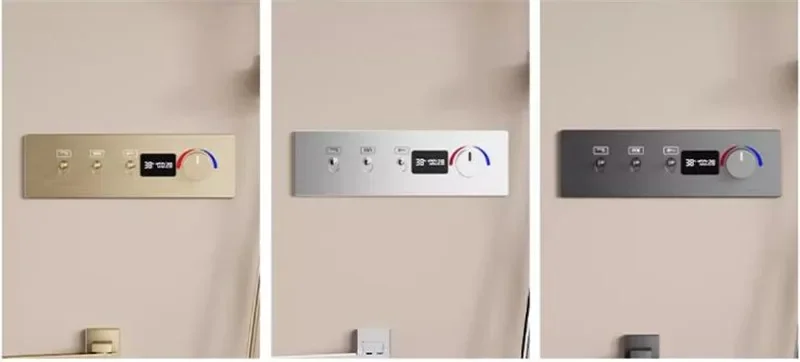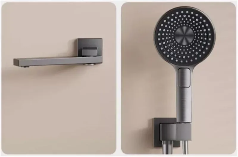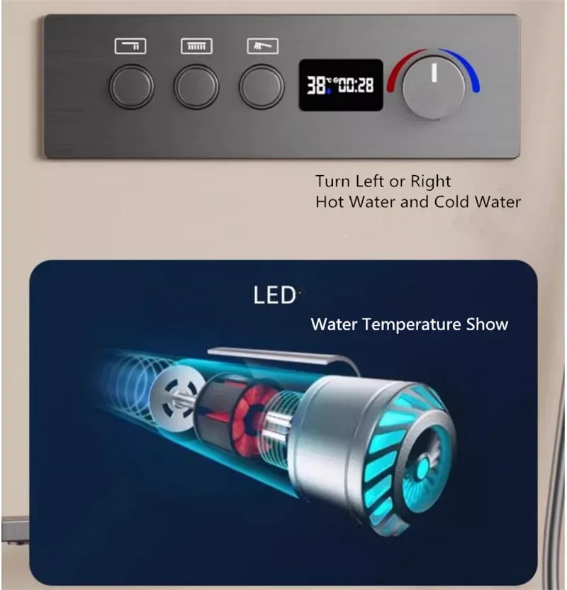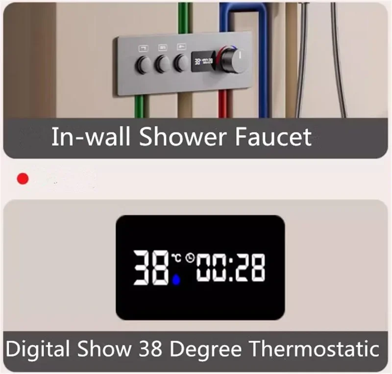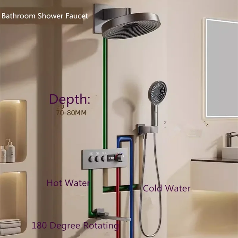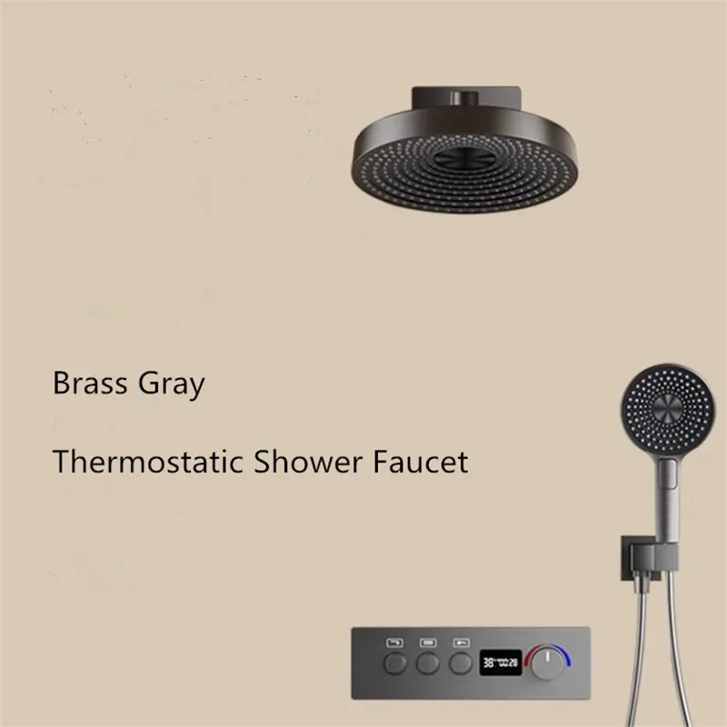 Brushed Gold Thermostatic Bathroom Shower Faucet in Wall Bath and Shower Faucet Set Thermostatic Mixer Bath and Rainfall Shower