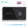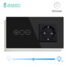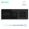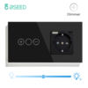 BSEED Touch Dimmer Switches 1gang1way Wall Light Switch LED Dimmer Plus EU Wall socket USB EU Standard Blue Backlight 10A