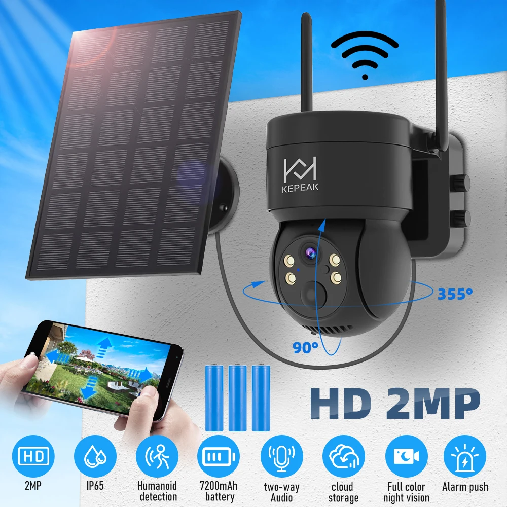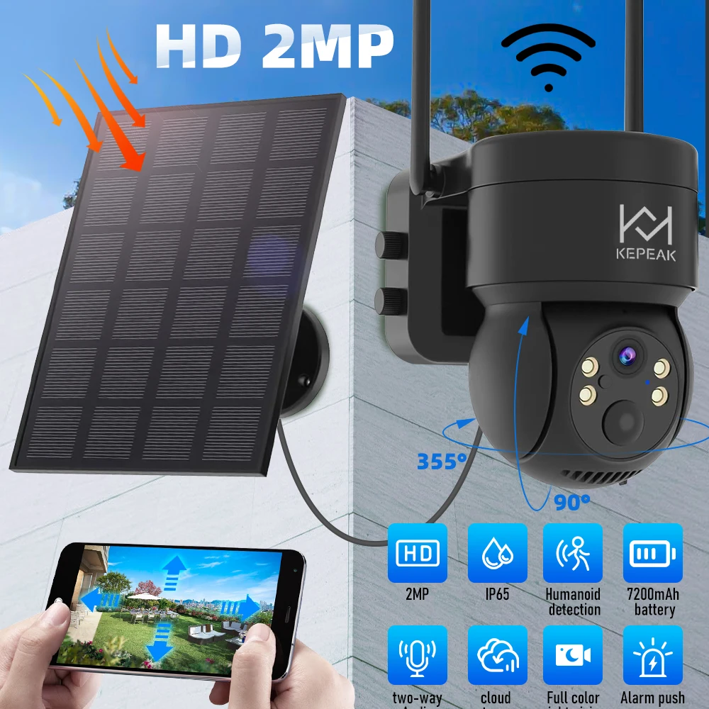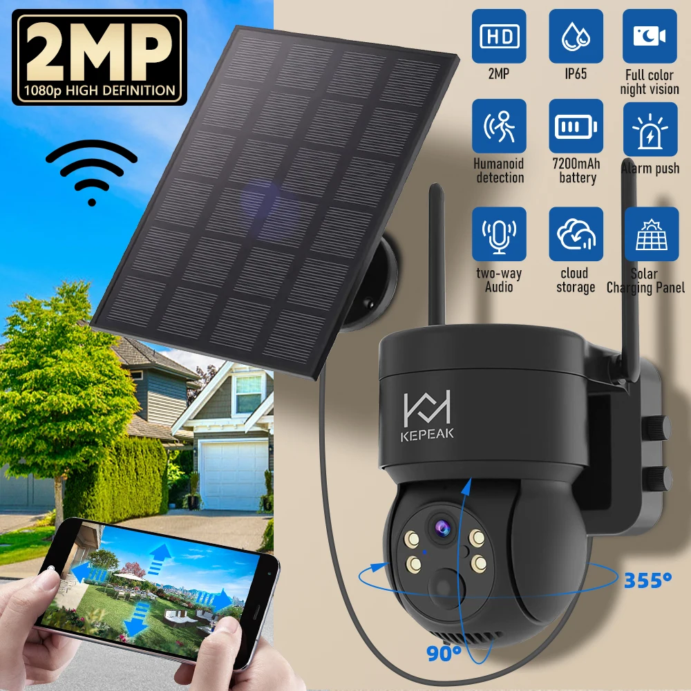 Built-in Battery Outdoor Wireless Solar IP Camera WiFi PTZ 1080P Video Surveillance Long Time Standby Waterproof