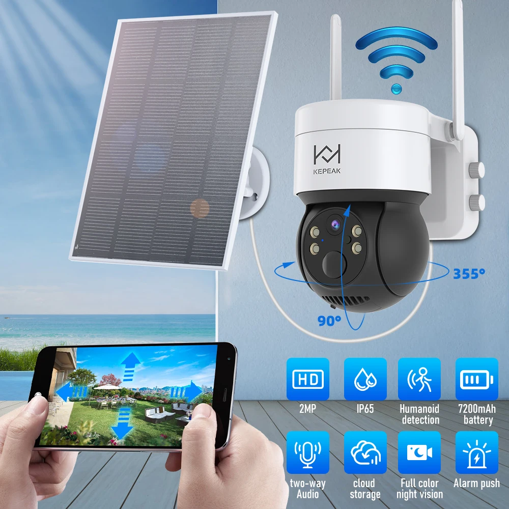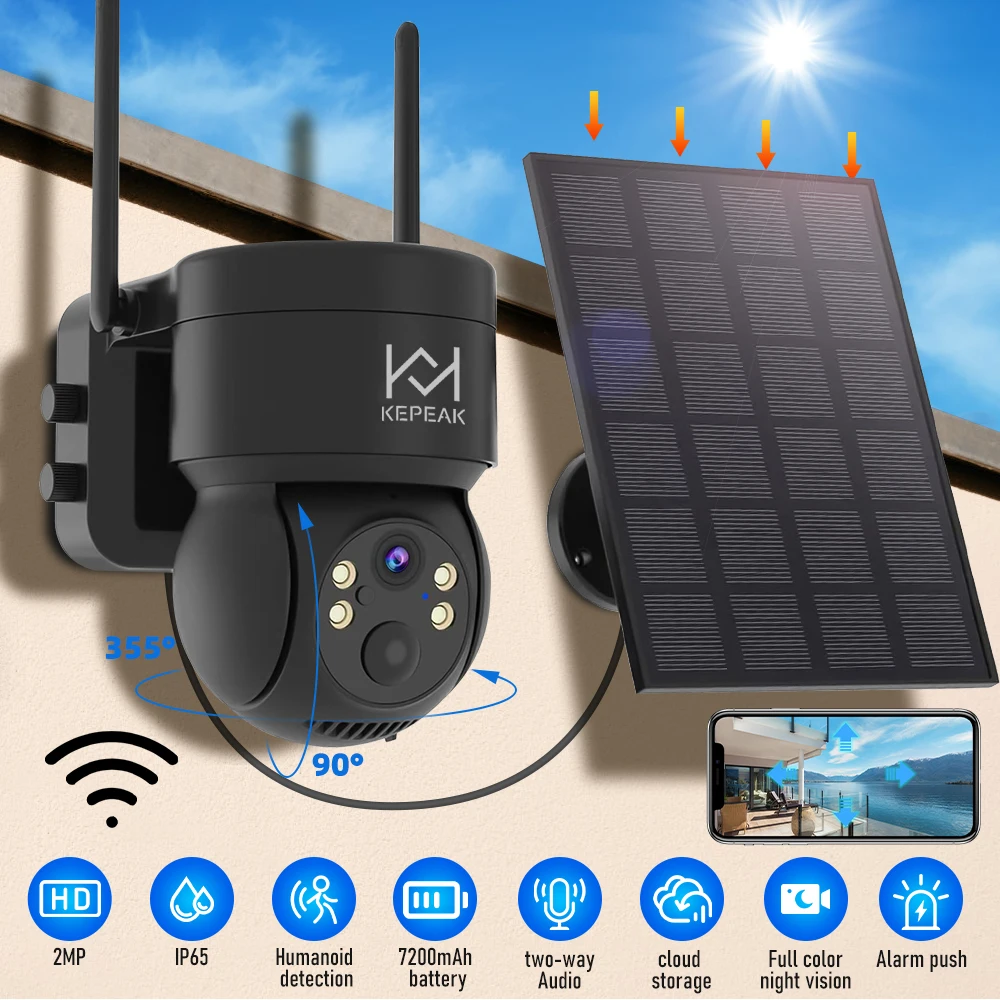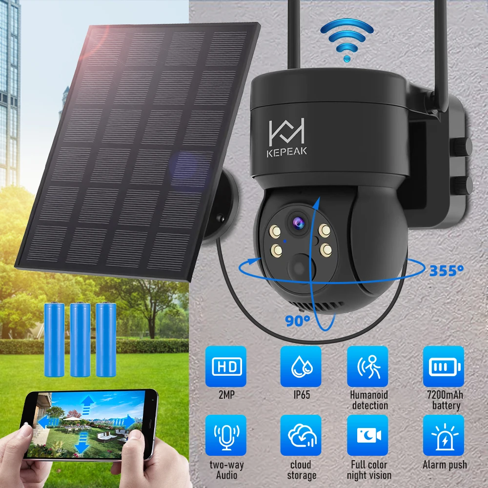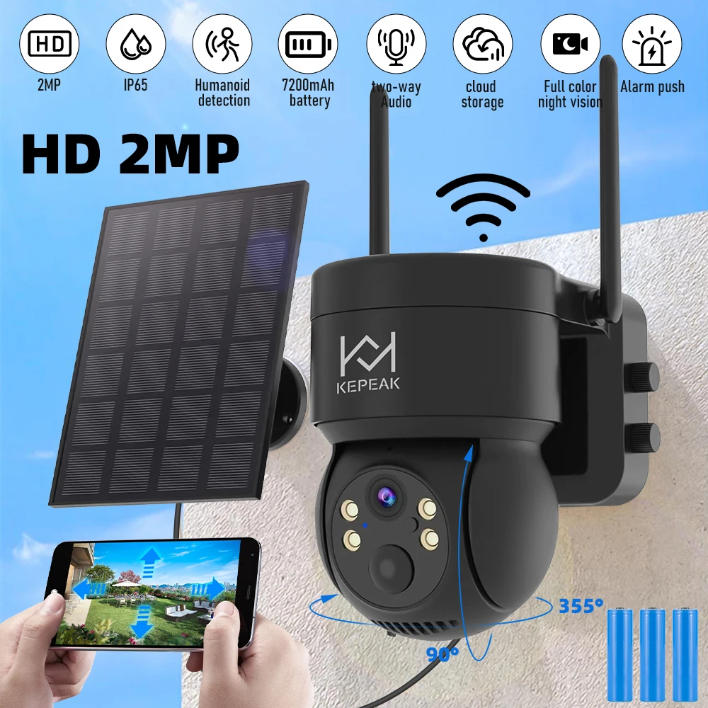 Built-in Battery Outdoor Wireless Solar IP Camera WiFi PTZ 1080P Video Surveillance Long Time Standby Waterproof