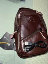 Excellent quality product, made in genuine leather, has 4 zipper pockets, and one with big button, has some internal pockets, 1 with zipper, comes with a USB adapter cable, shipping was fast, I recommend this product and I recommend this seller. The color is a very dark coffee brown, in the photo it looks lighter and more reddish, the color is beautiful!