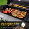 - 【Large Cooking Area】This outdoor BBQ grill model boasts an impressive 332 inches of main cooking surface and 125inches warming rack, allowing you to seamlessly prepare a feast for the crowd or just an intimate family dinner with ease.With two generously-sized side prep tables, the right side table can ignites into a powerful auxiliary burner. Our side tables offer the convenience of a full outdoor kitchen within your reach.