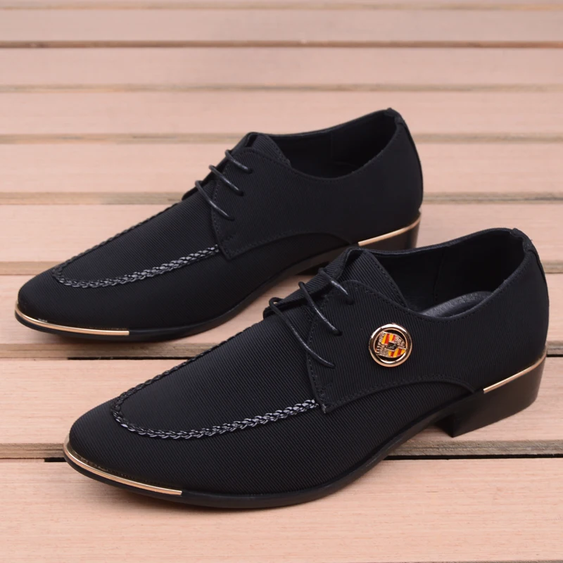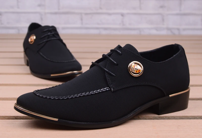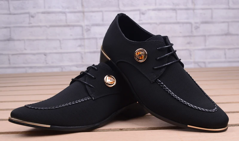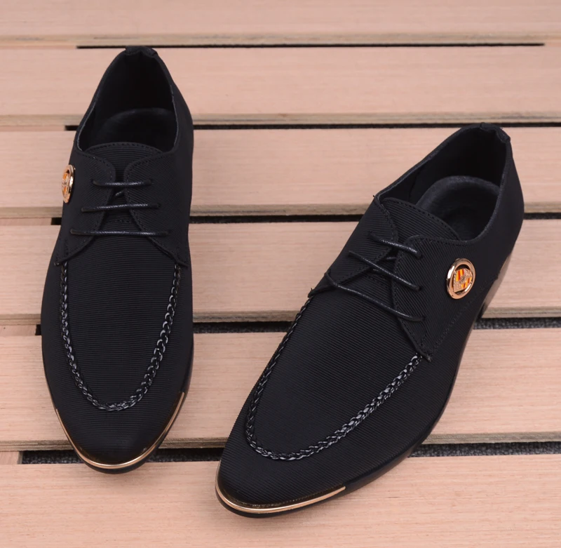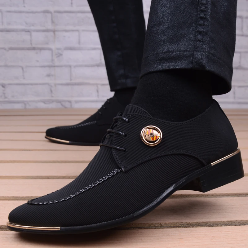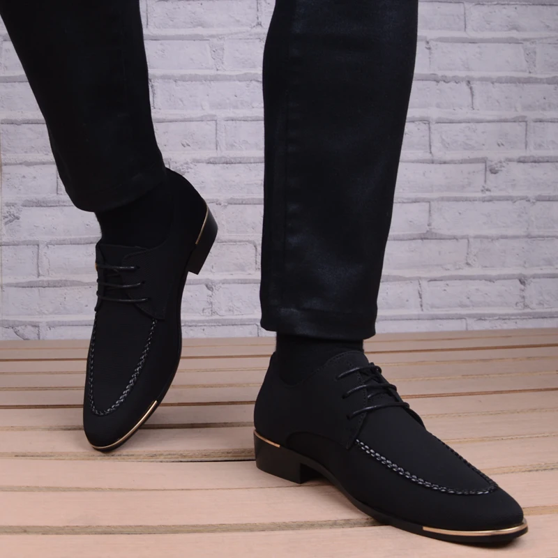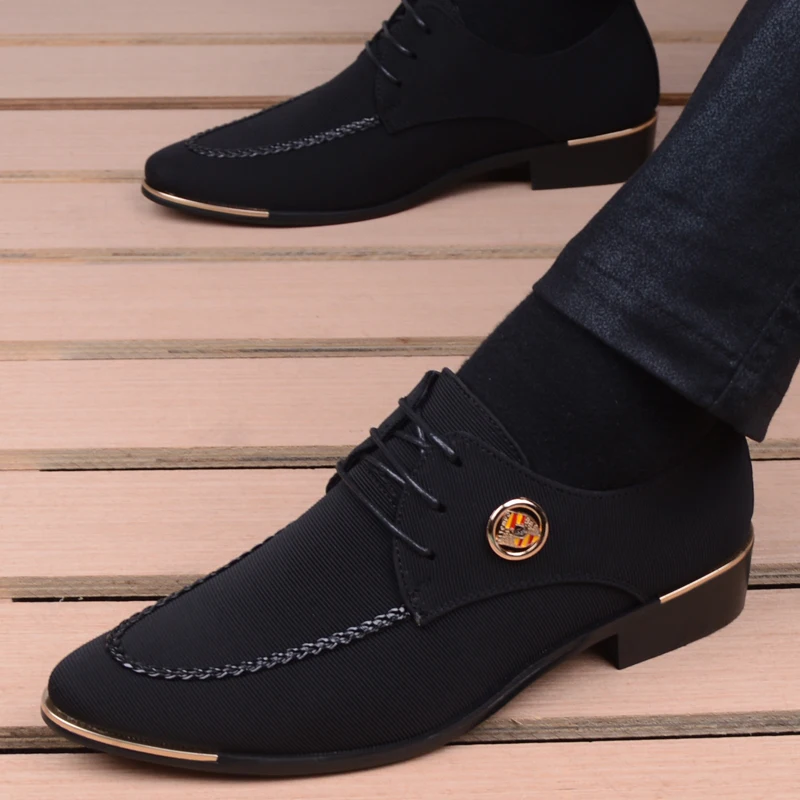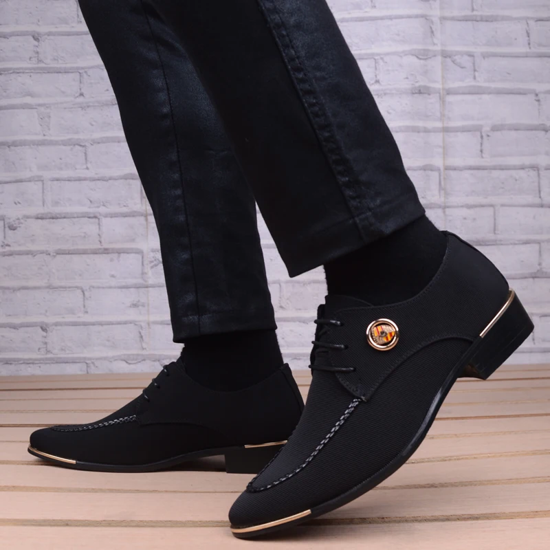 Business Men Leather Shoes Fashion Formal Dress Shoes Men Breathable Pointed Toe Office Wedding Shoes Flats Footwear Black Cloth
