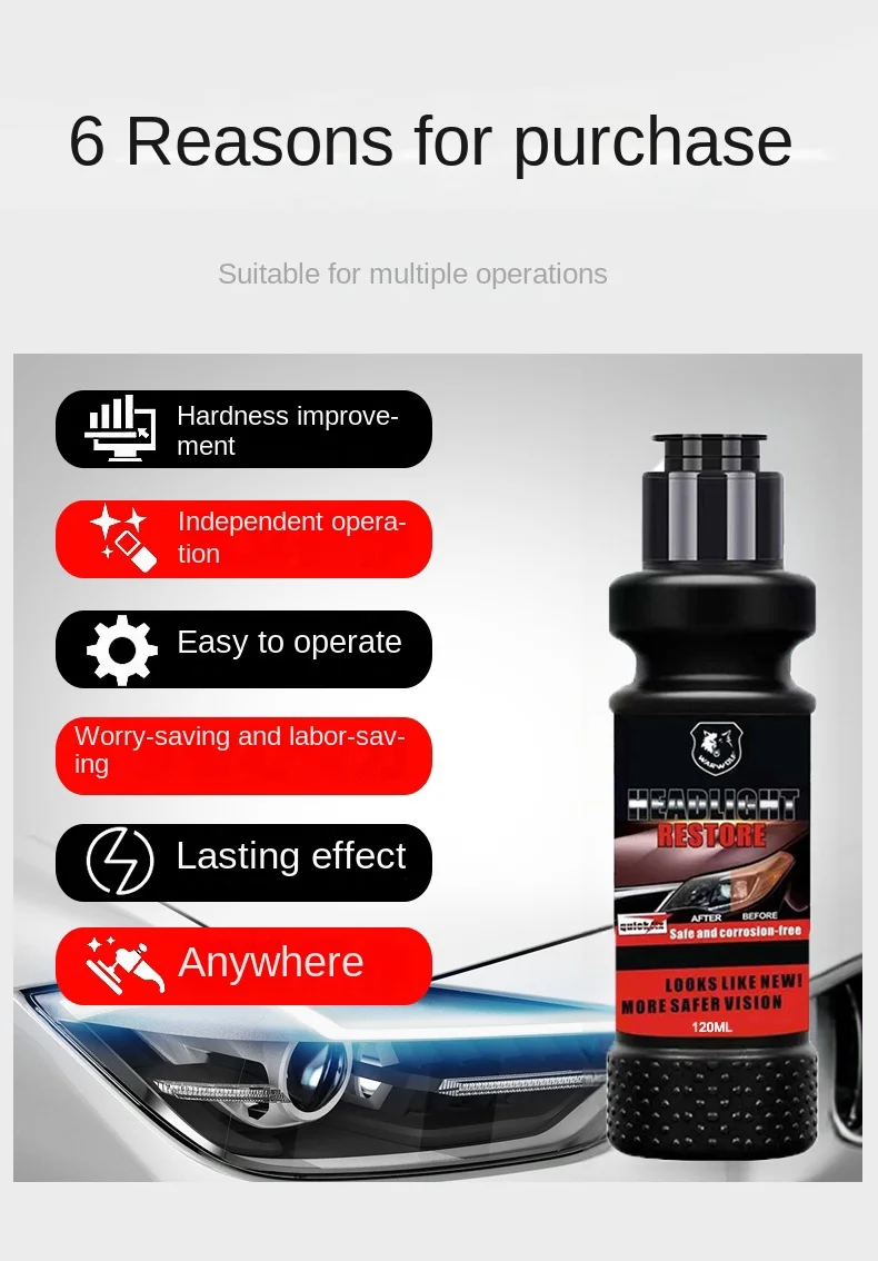 1. Can effectively eliminate vehicle scratches, and solve problems such as lightweight and yellowing.