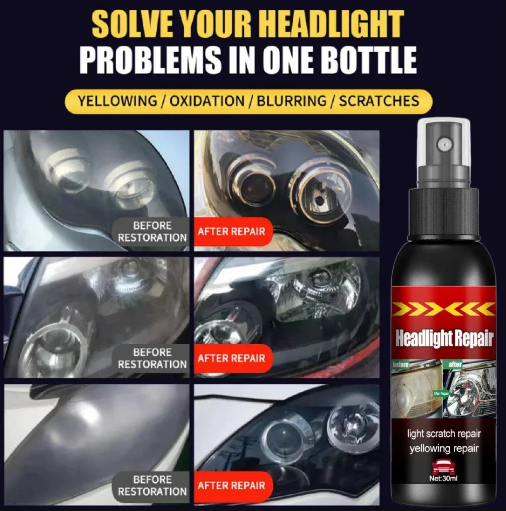 Features: Car headlight repair and renovation – Lightweight scratch repair, yellow refurbishment, oxidation, Kraken, blur.