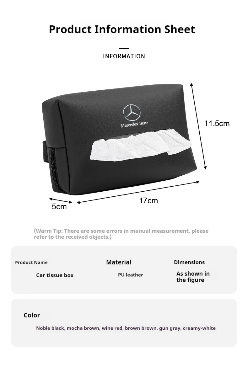 Car tissue box seat backrest armrest box tissue storage box For Mercedes Benz AMG A B C E S Class SLK GLS GLK GLC SL GLA Vito ML