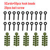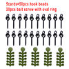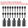 Feature: 1. Bait screws can be a quick and easy way to connect decoy Boilies, nuts and pop-up windows, and can be used for beautiful presentations. 2. Super tight hook beads, Installed on special position to ensure the excellent attack angle. Specification: Hook Beads: super tight Size: Bait screws with oval rings: 15mm Bait screws with round rings:13mm Package: 5 cards = 50pcs hook beads + 20pcs bait screws with round rings 5 cards = 50pcs hook beads + 20pcs bait screws with oval rings 10 cards = 100pcs hook beads