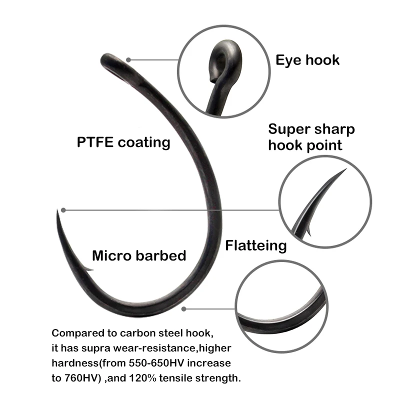 Carp Fishing Krank Hook Wide Gape Barbed Strengthen Super Sharp Hook Point PTFE Coating High Carbon Stainless Steel Fish Hooks