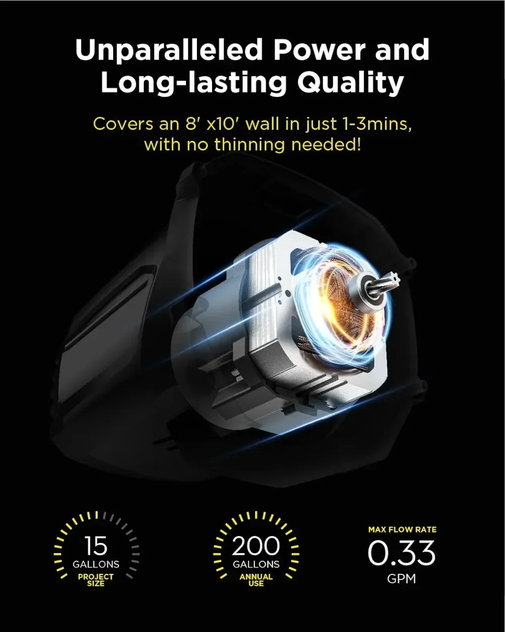 - Paint Like a Pro – No pre-thinning needed! Our AtoMax tip allows you to reverse the tip when clogged to keep you spraying, delivers smooth, even coatings that rival the work of expert contractors. Experience minimal overspray, which saves on paint and reduces costs. Equipped with a robust, high-performance motor, the M3 airless paint sprayer ensures consistent, reliable results.